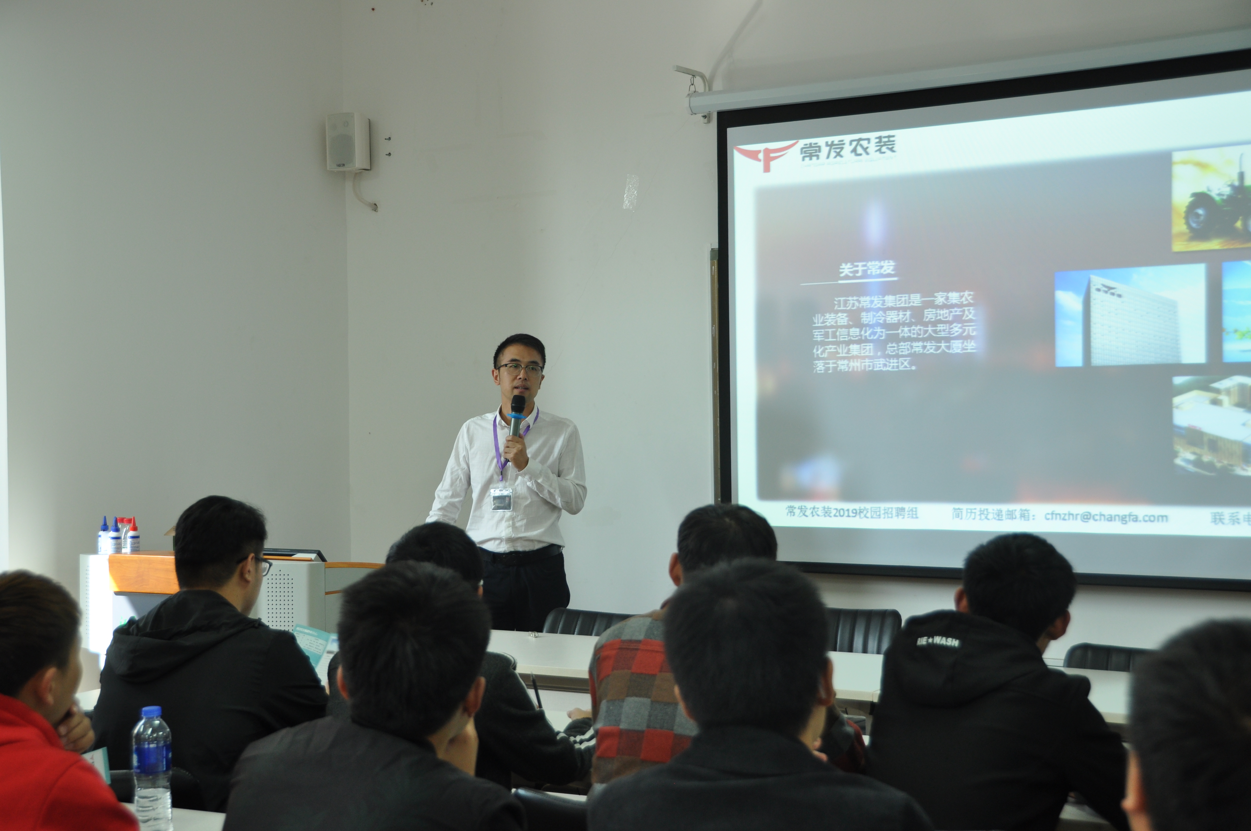 10月18日下午,常发农业装备股份有限公司在工科楼A414进行企业宣讲招聘,来自农业装备技术、数控技术与汽车检测与维修技术专业同学参加了此次企业宣讲活动。