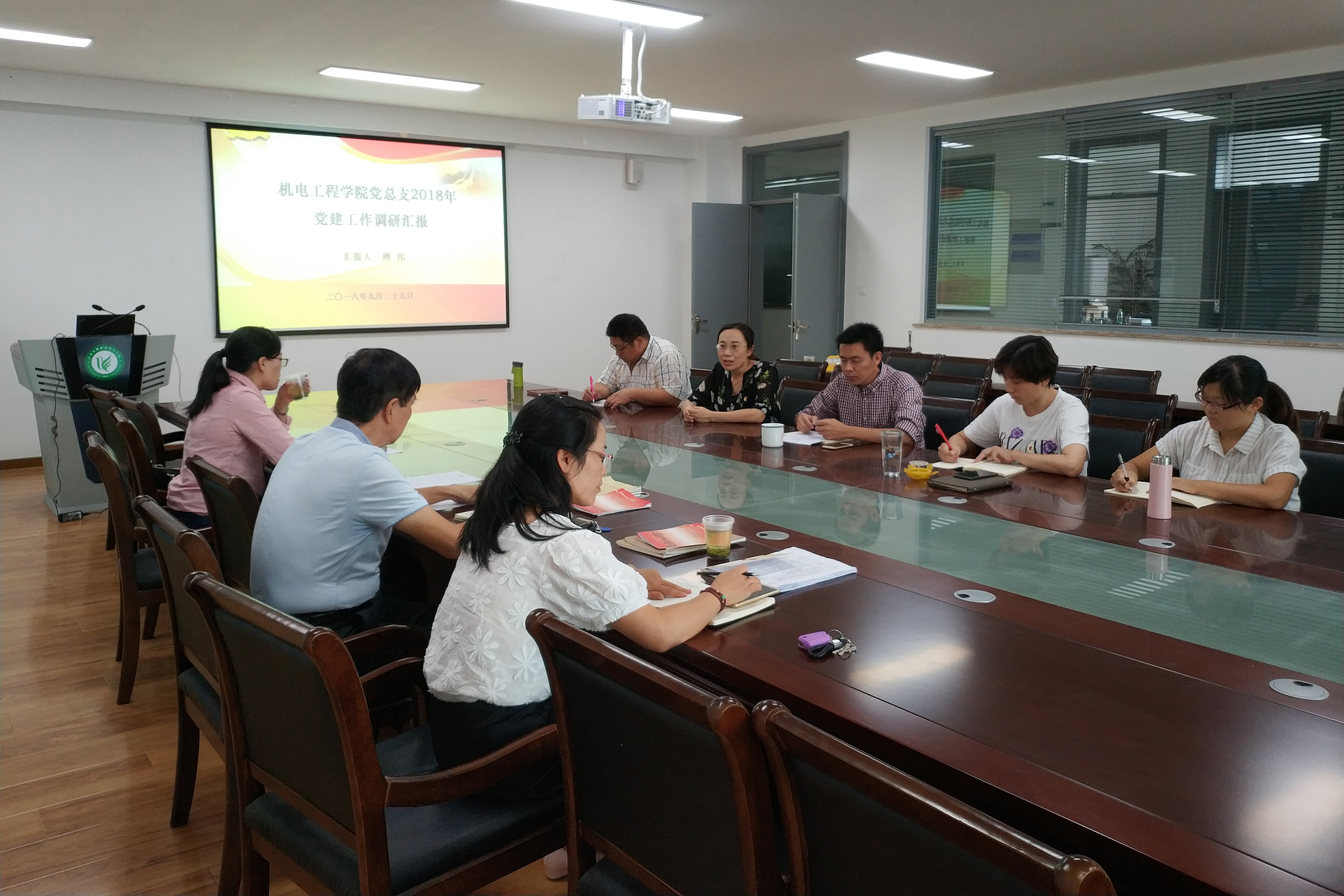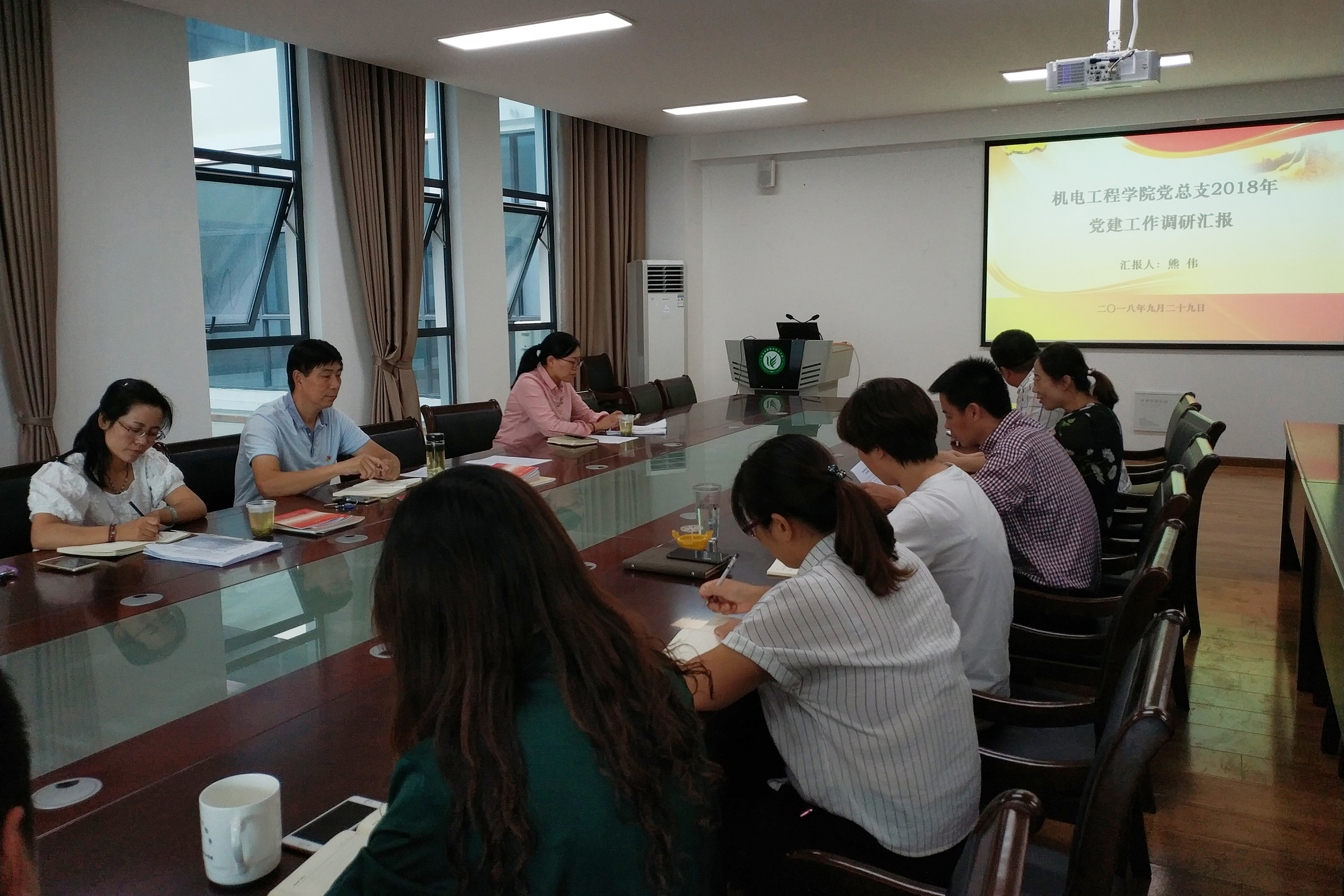调研组首先听取熊伟同志关于机电工程学院2018年党总支工作情况汇报,并检查相关资料台帐。