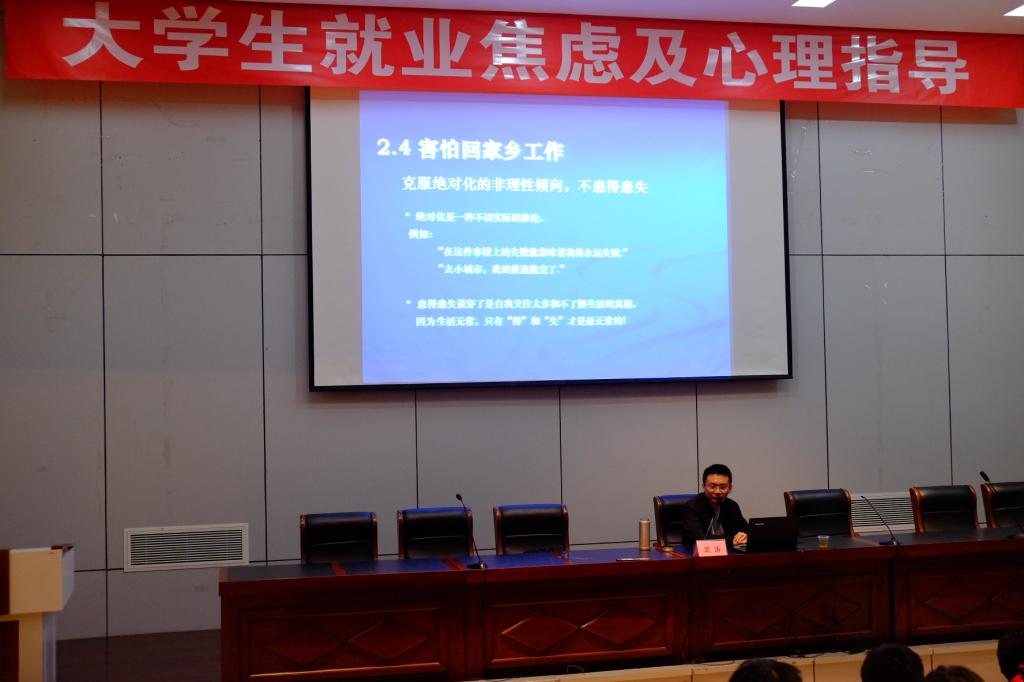 为了帮助同学们有效应对就业季压力,4月24下午,机电工程学院和经济与人文学院在研发楼报告厅联合举办“大学生就业焦虑及心理指导”讲座。本次讲座特邀南京师范大学副教授裴涛老师担任主讲。