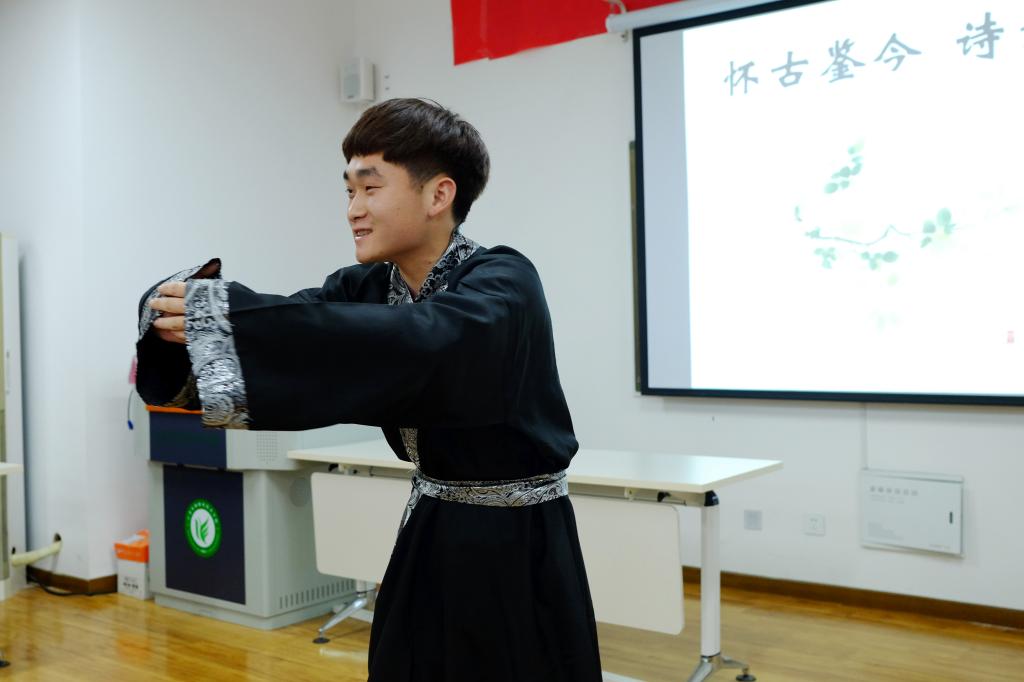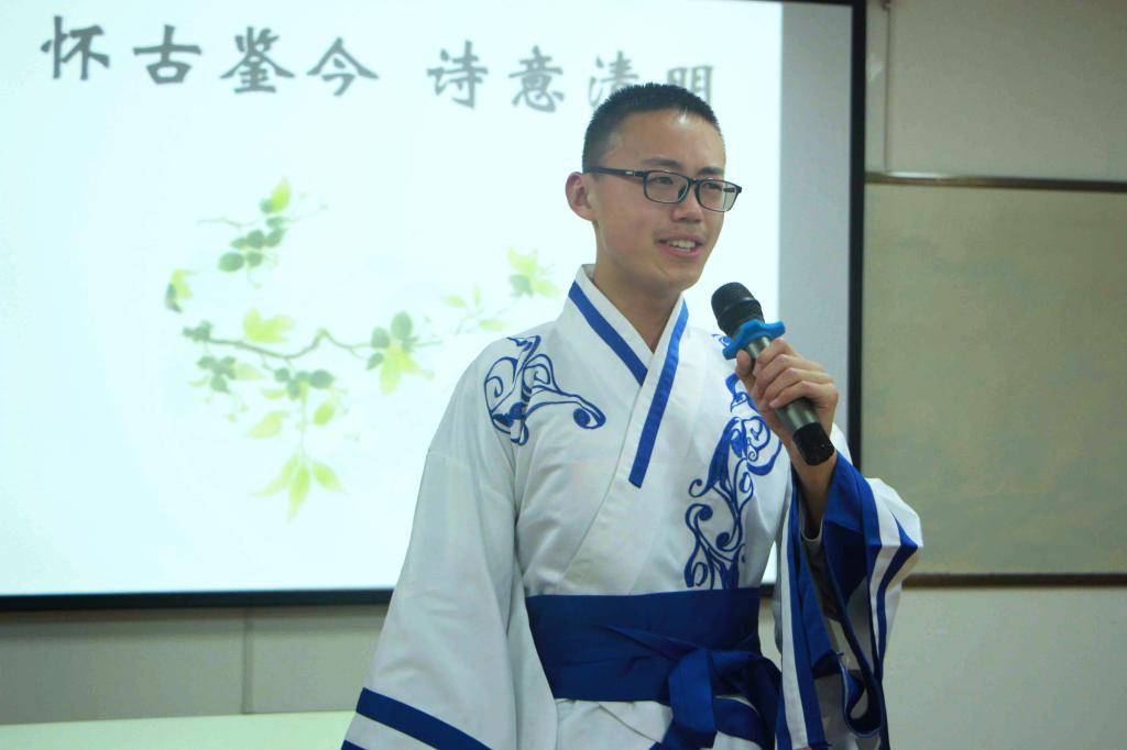 比赛中,身着古代服饰的选手们韵味十足,每个人的诗歌都是深情流露,有的清新脱俗如幻如梦,有的气势磅礴让人心潮澎湃,有的悲悯怅怀引人侧目,时间在同学们精彩的演绎中如水而逝,给这个清明留下了涓涓回响。