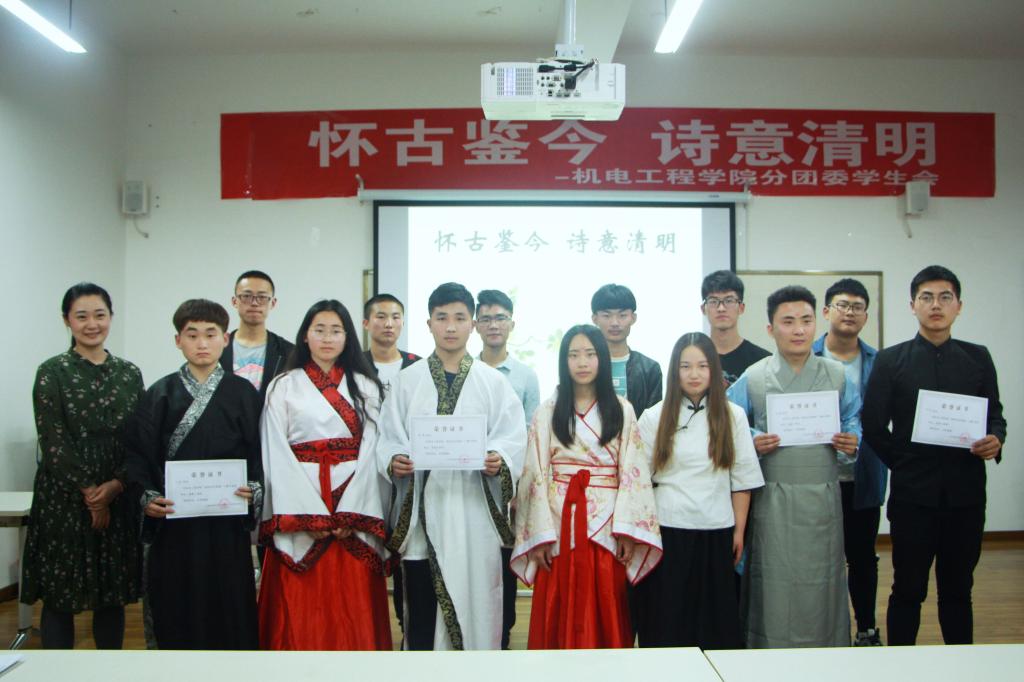 为传承传统文化,引导学生“文化自信”的建立,机电工程学院于4月2日晚开展“怀古鉴今 诗意清明”朗诵活动,13名参赛选手带来了精彩的演绎。