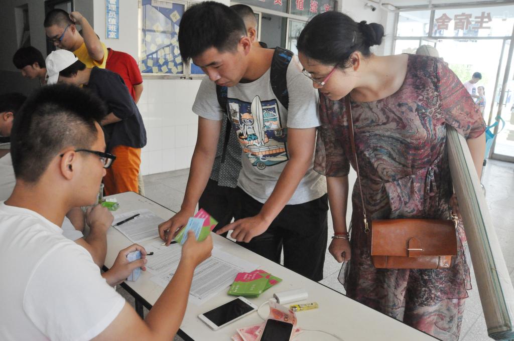 8月30日,学院13级高职班新生到校报到。机电工程系何永鹏、孙昌权两位新生班主任带领志愿者,在9栋宿舍楼大厅内迎接13级农业机械应用技术高职班的同学到来。报到现场井然有序,志愿者为新生办理登记,发放校园卡、电话卡;新生班主任则耐心解答同学及家长的咨询,让他们能快速适应新的环境。
