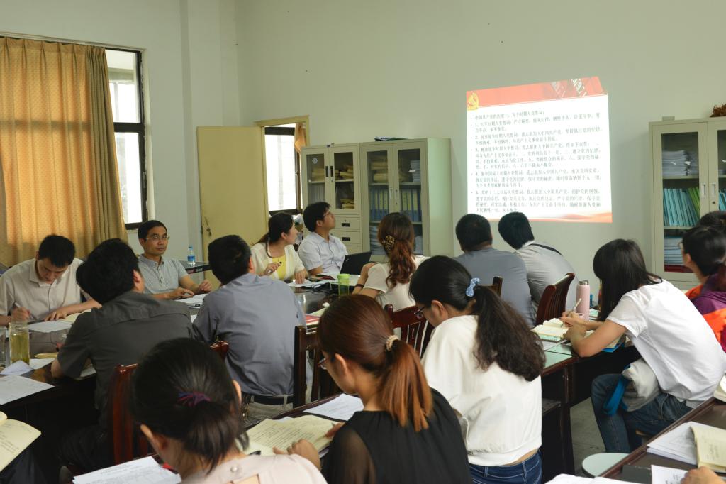 专题党课为三个部分。首先从党的性质、理想、宗旨、目标等方面解读了党章的重要意义,让大家更加深刻地理解了新中国选择中国共产党,选择中国特色社会主义道路的历史必然性,增强了党员教师的道路自信、理论自信、制度自信;其次回顾了95年来,我们党团结带领全国各族人民完成和推进的三件大事——完成新民主主义革命、完成社会主义革命和进行改革开放新的伟大革命;接着总结了党之所以总能战胜风险、力挽狂澜,是因为党的事业代表着历史前进的方向,党的建设把党锻造得坚强而有力量。最后李杨书记和大家分享了习近平总书记的讲话和要求,希望全系党员教师要脚踏实地、立足专业、主动作为,在自己的本职工作中积极践行“两学一做”,做一名合格的教育人。