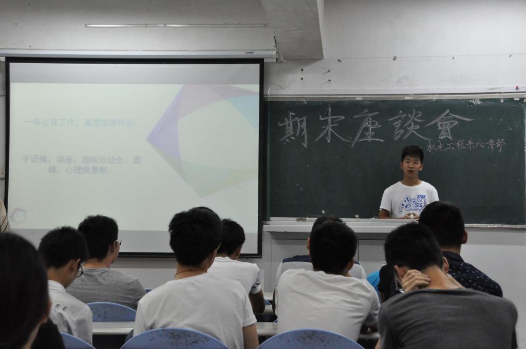 6月15日晚上,机电工程系心育部在J3-110教室召开心育干部座谈会,本次会议由周凌云老师主持,14、15级心育部成员参加。