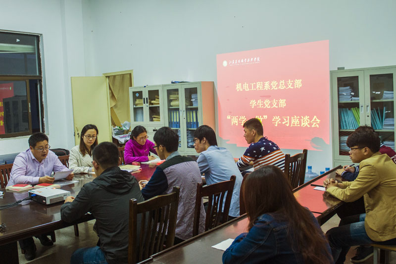 为认真落实学院党委《关于在全院党员中开展“学党章党规、学系列讲话,做合格党员”学习教育工作的通知》,5月21日晚,机电工程系学生党支部在系办公室召开了“两学一做”学习座谈会。会议由学生党支部书记何永鹏主持,机电工程系党总支副书记李杨和部分学生党员代表参加了此次座谈会。