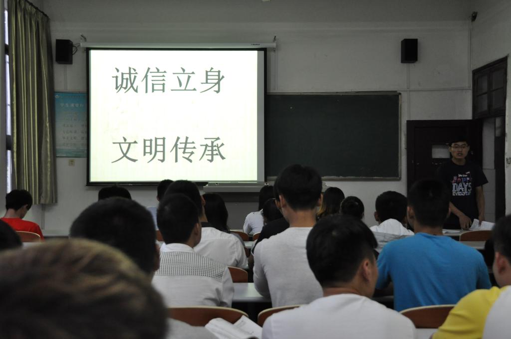 为了培养在校大学生的诚信品质、树立感恩、自强的意识,5月12日晚,机电工程系在J2-103举办了“诚信立身,文明传承”诚信教育主题活动。本次活动由学生会副主席陈卫星主持,全系贷款学生、各班班委参与本次活动。