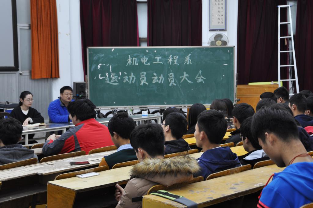 3月16日晚,机电工程系在收视1厅召开了2016年春季运动会动员大会,分团委书记何永鹏、全体运动员和相关学生干部参与了此次会议。