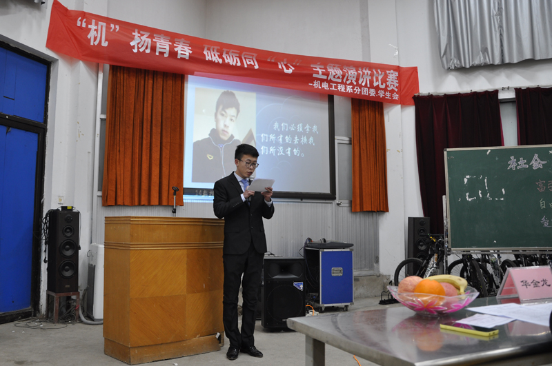 3月7日晚,机电工程系举办了“‘机’扬青春、砥砺同‘心’——我的社会主义核心价值观”主题演讲比赛。机电工程系相关老师、团学负责人莅临现场。