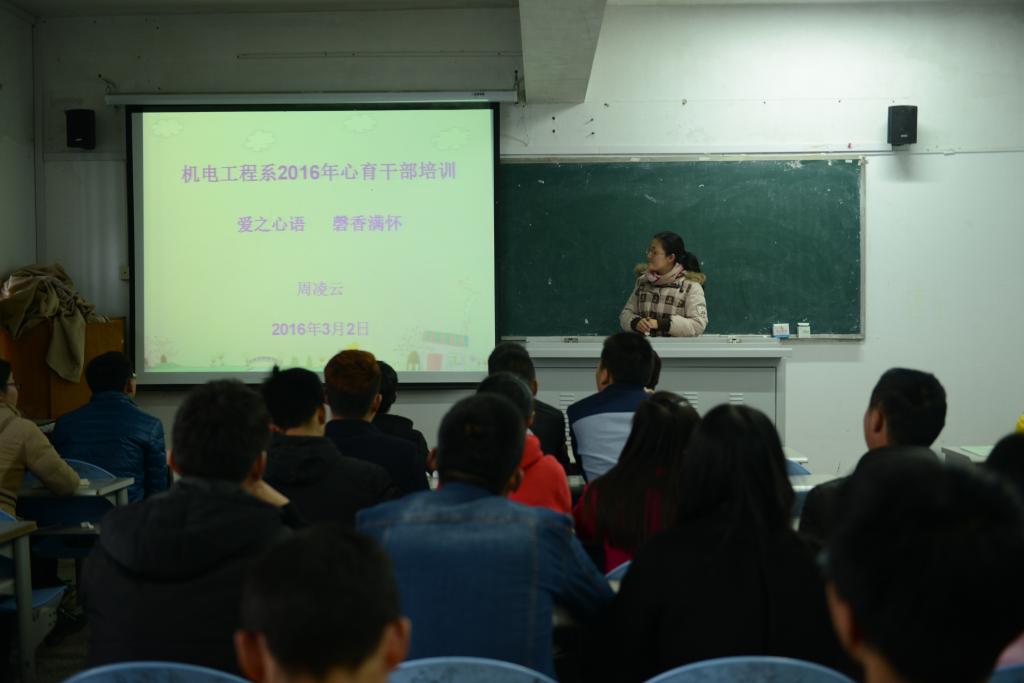 3月2日下午,机电工程系心育部在J3-110开展了“爱的心语,磬香满怀”学生干部培训和心育工作表彰大会。活动由周凌云老师主持,并邀请学生会主席团、各部门部长、心育部所有成员以及14、15级各班班长参加了本次活动。