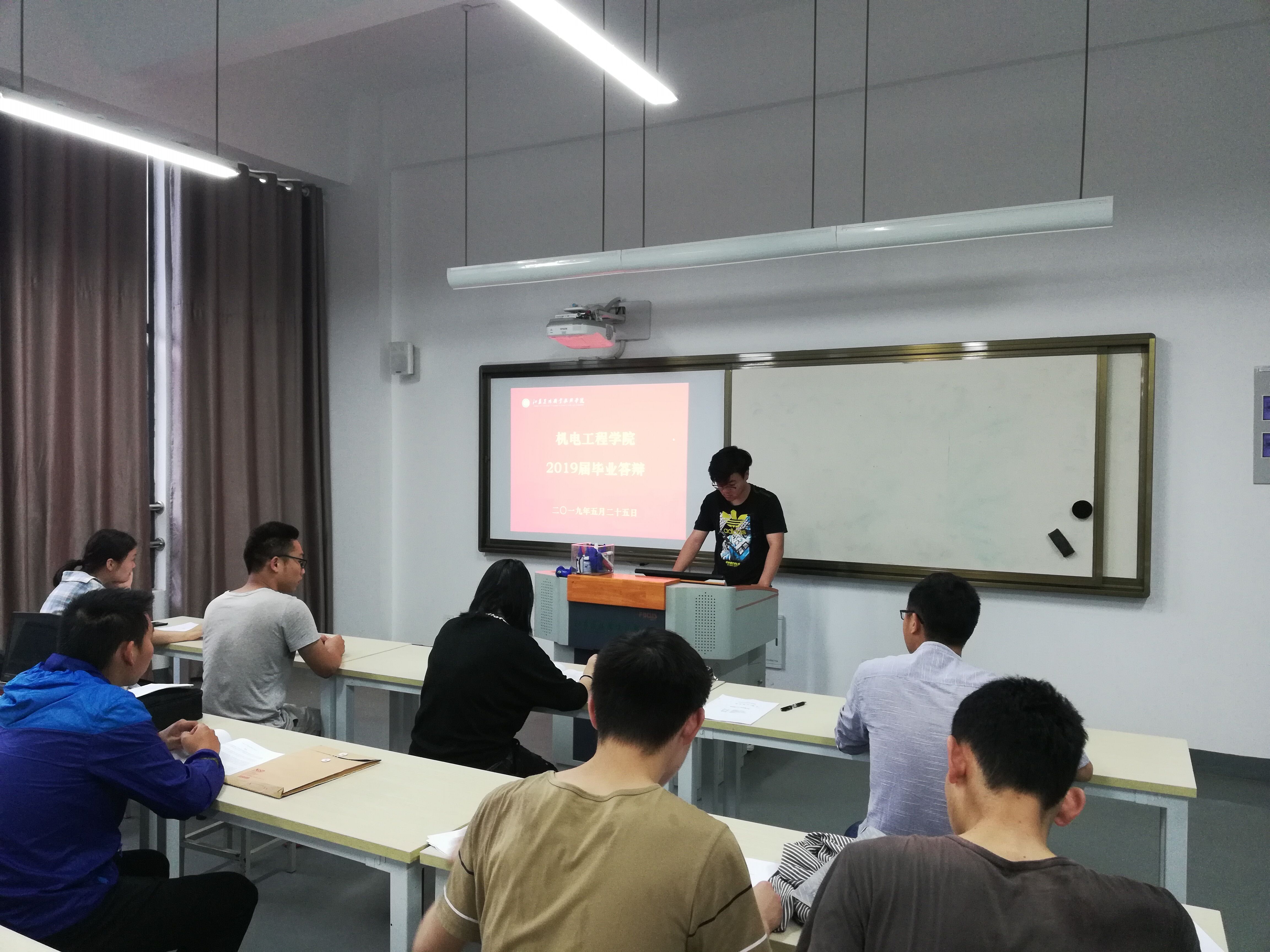 为保证答辩工作质量,我院对照《机电工程学院2019届毕业生毕业答辩实施方案》,以“高标准、严要求”原则开展论文答辩工作。答辩分自我陈述和提问与答辩两个环节,按照方案要求,每个学生做好PPT汇报自己的论文内容,汇报时间5分钟,答辩教师根据论文提出相关问题,学生回答3分钟。同时,答辩老师针对论文指出存在的不足,并提出修改意见。总体来看,此次毕业论文(设计)工作组织得当,答辩工作紧张有序,学生综合素质较往年有所提升。