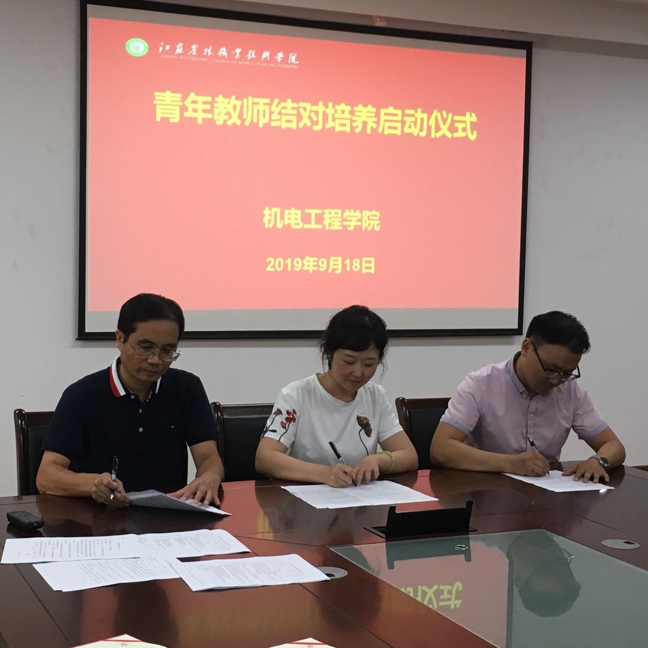 2019年9月18日下午,机电工程学院在会议室举行10位青年教师结对培养启动仪式,由高菊玲副院长主持,刘永华院长出席了启动仪式。