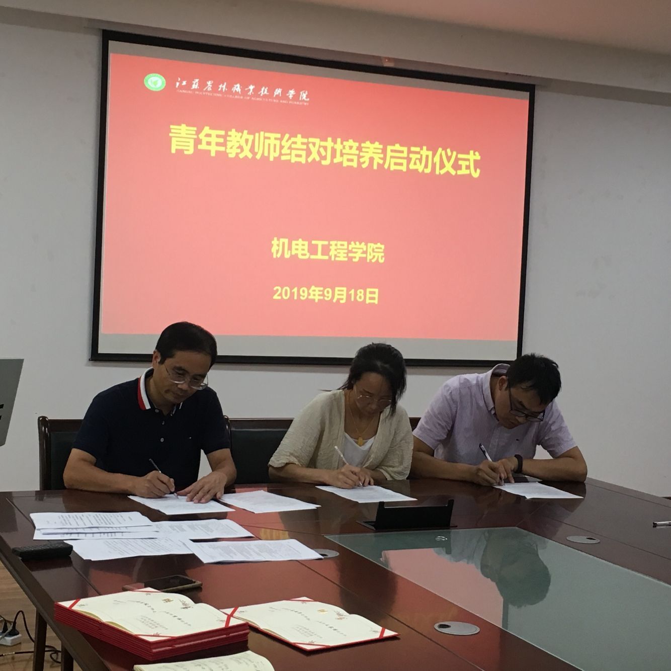 会上签订了学院院长、指导教师、青年教师三方的青年教师指导责任书和青年教师培养计划,并颁发了导师聘书。
