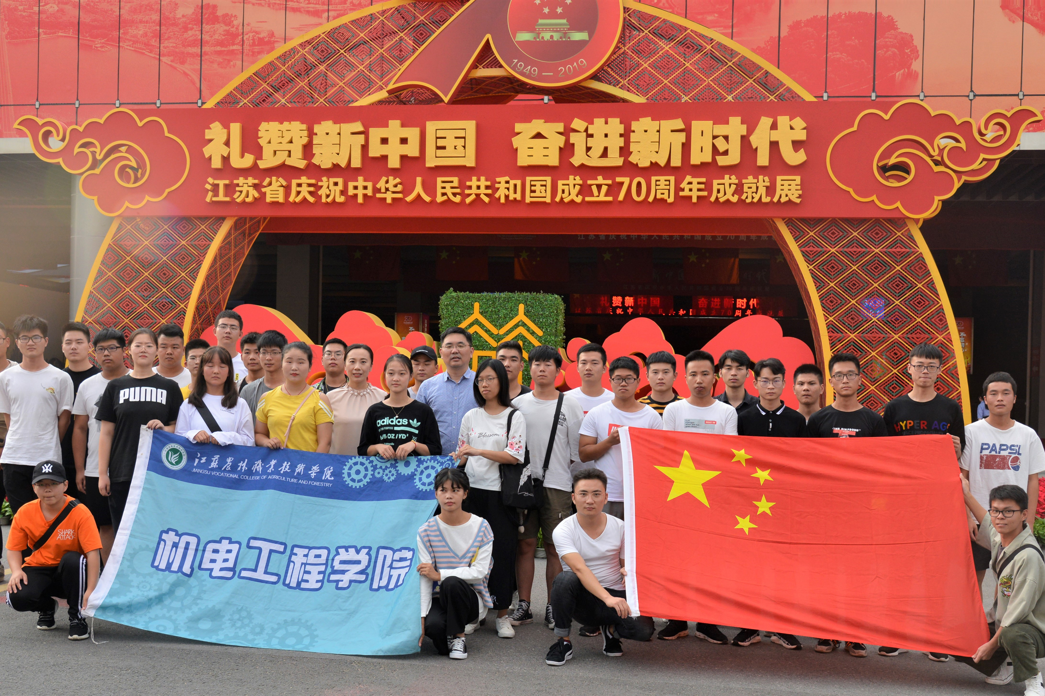 江苏省庆祝中华人民共和国成立70周年成就展“礼赞新中国,奋进新时代”,9月28日在南京国际博览中心开幕。9月29日下午机电工程学院党总支副书记李杨带领35名学生干部参观了此次展出。