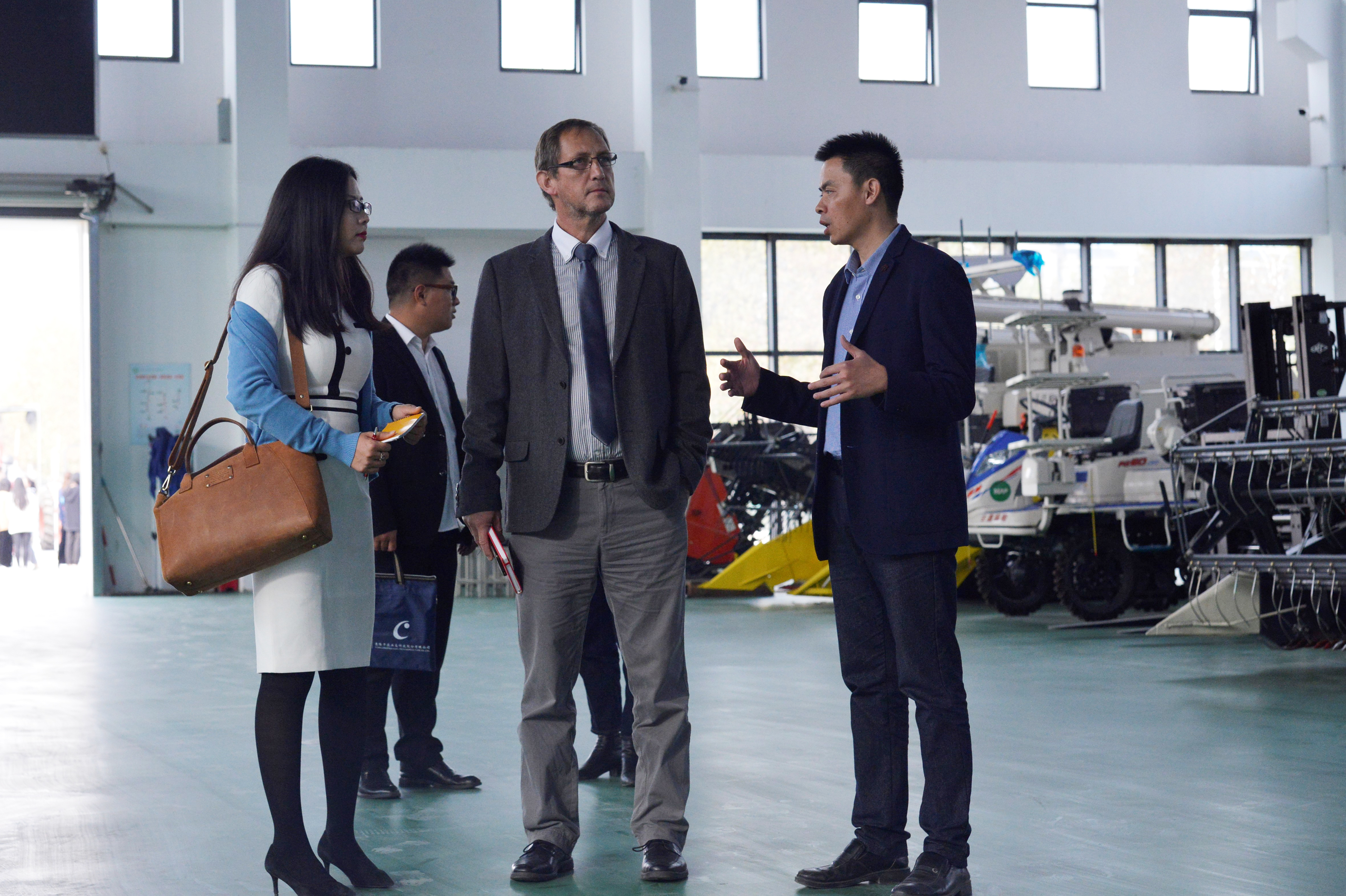 贺在锐主任表示中德作物生产与农业技术示范园农机人才培训基地要以为社会、为企业培养既有良好职业素质、又有竞争技能的应用型人才为目标,通过校企合作,在农机操作与驾驶、农机新技术推广与应用、农机教学与科研项目研发、科技平台打造等方面加强合作,形成更多的成果。