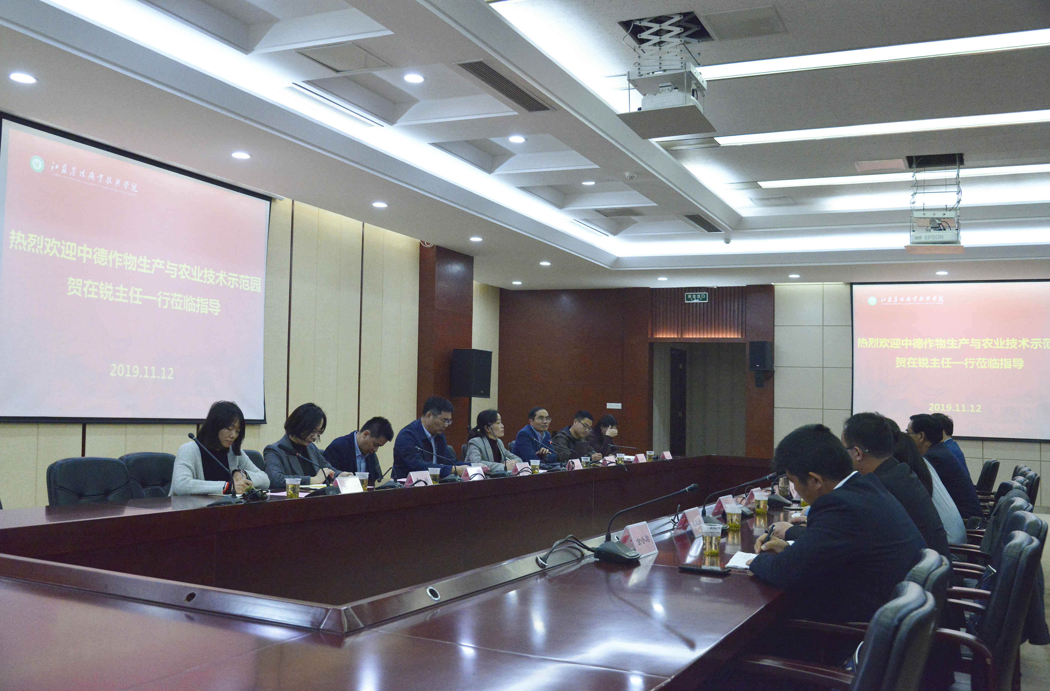 曹仁勇副院长首先代表学院对中德作物生产与农业技术示范园各位领导、专家的到来表示欢迎,并介绍了我院基本情况。表示通过“中德作物生产与农业技术示范园”实践基地的建立,可实现校企优势互补、工学结合,为乡村振兴战略的实施培养出更多、更好的优秀人才,助力我国“三农”事业的发展。