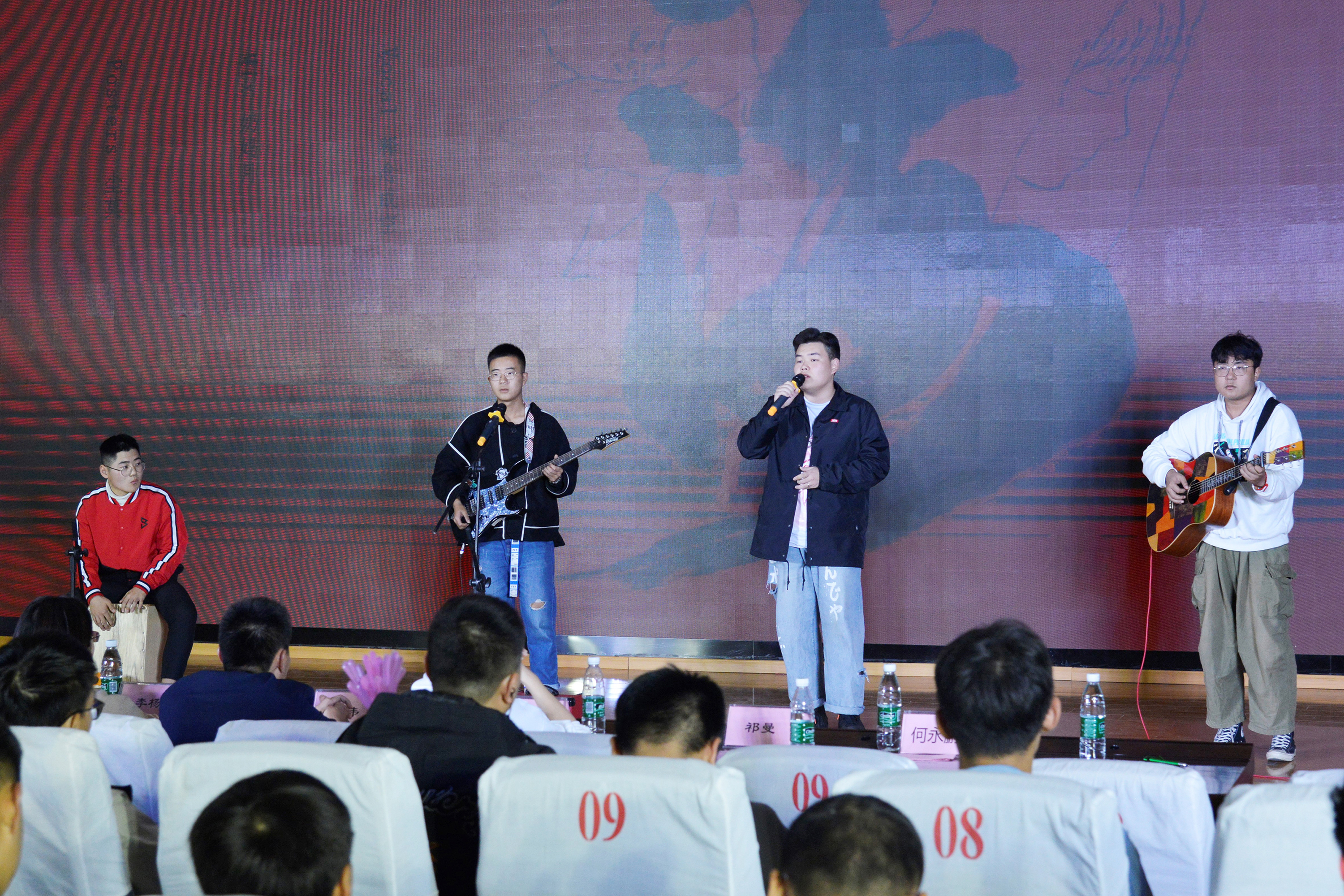 本次才艺大赛节目形式丰富,脱口秀、相声、舞蹈串烧、小品等等,充分展现了机电学子的活力与风采。其中19电气自动化2班姜文庆同学和吉他社成员以精湛的吉他弹奏和演唱技术,演绎的《蓝天、白云、山海情歌》获得评委和现场同学的一致好评,夺得本次才艺大赛冠军。
