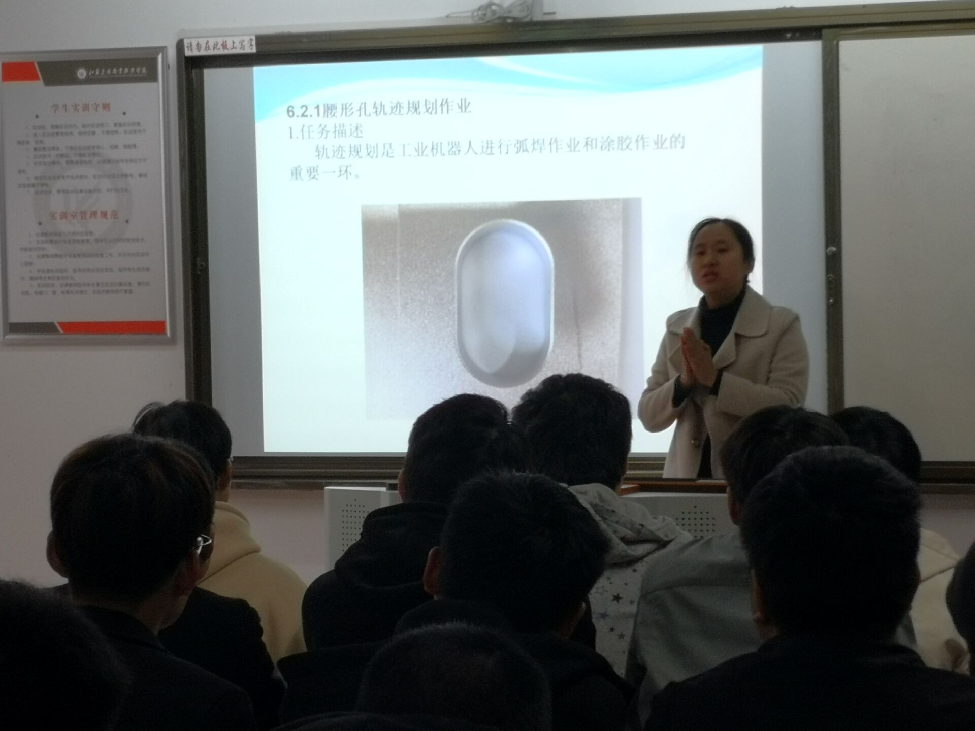 吴丹老师进行了轨迹的指令编程与操作内容教学,讲解细致,演示规范,辅导细心,整个授课过程讲练结合,紧张有序,现场气氛活跃。教学效果良好,得到听课教师的一致好评。