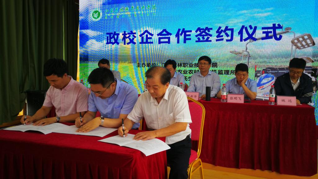 芒种喜雨,“三夏”农忙。6月5日上午,学院党委副书记、院长巫建华,党委委员、副院长曹仁勇一行赴句容市后白镇参加“三夏”智能农机装备应用现场观摩会,并出席了与句容市农业农村局、江苏好味稻生态科技有限公司共同举办的“政校企合作”签约仪式。江苏省农机化推广站陈新华站长应邀参加、后白镇党委张明飞书记、江苏好味稻生态科技有限公司、丰疆智能科技股份有限公司负责人及各农机合作社负责人出席仪式。签约仪式由句容市农业农村局袁民局长主持。