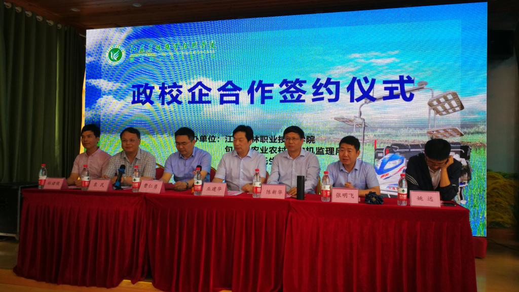 江苏省农机化推广站陈新华站长致辞发言,他赞许此次政校企三方合作,资源互补。鼓励三方围绕农业生产全程机械化开展种植模式、绿色防控、无人作业等农机新技术的推广和应用示范,树立江苏有影响力的“全程机械化+综合农事服务中心”运作模式。