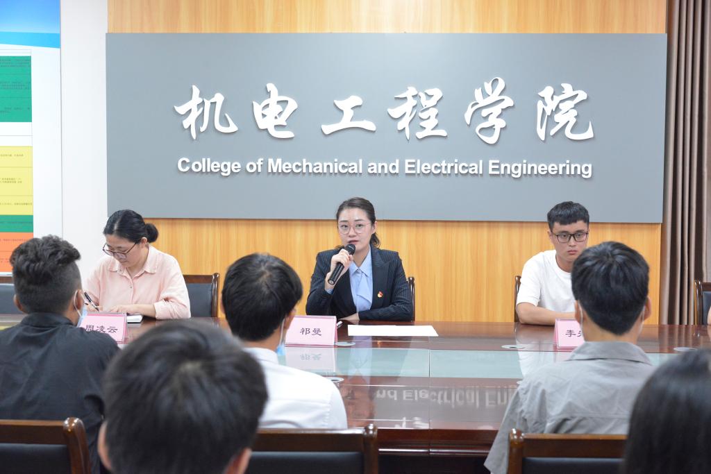 为做好2021届毕业生就业教育,引导学生树立良好的择业观念,9月15日上午,机电工程学院邀请到2015届农业机械应用技术专业优秀毕业生李先品,在工科楼会议室与2021届毕业生进行职业发展交流。相关班主任、教研室老师以及毕业生代表参加了线下活动。同学们还可以通过抖音APP观看现场直播。