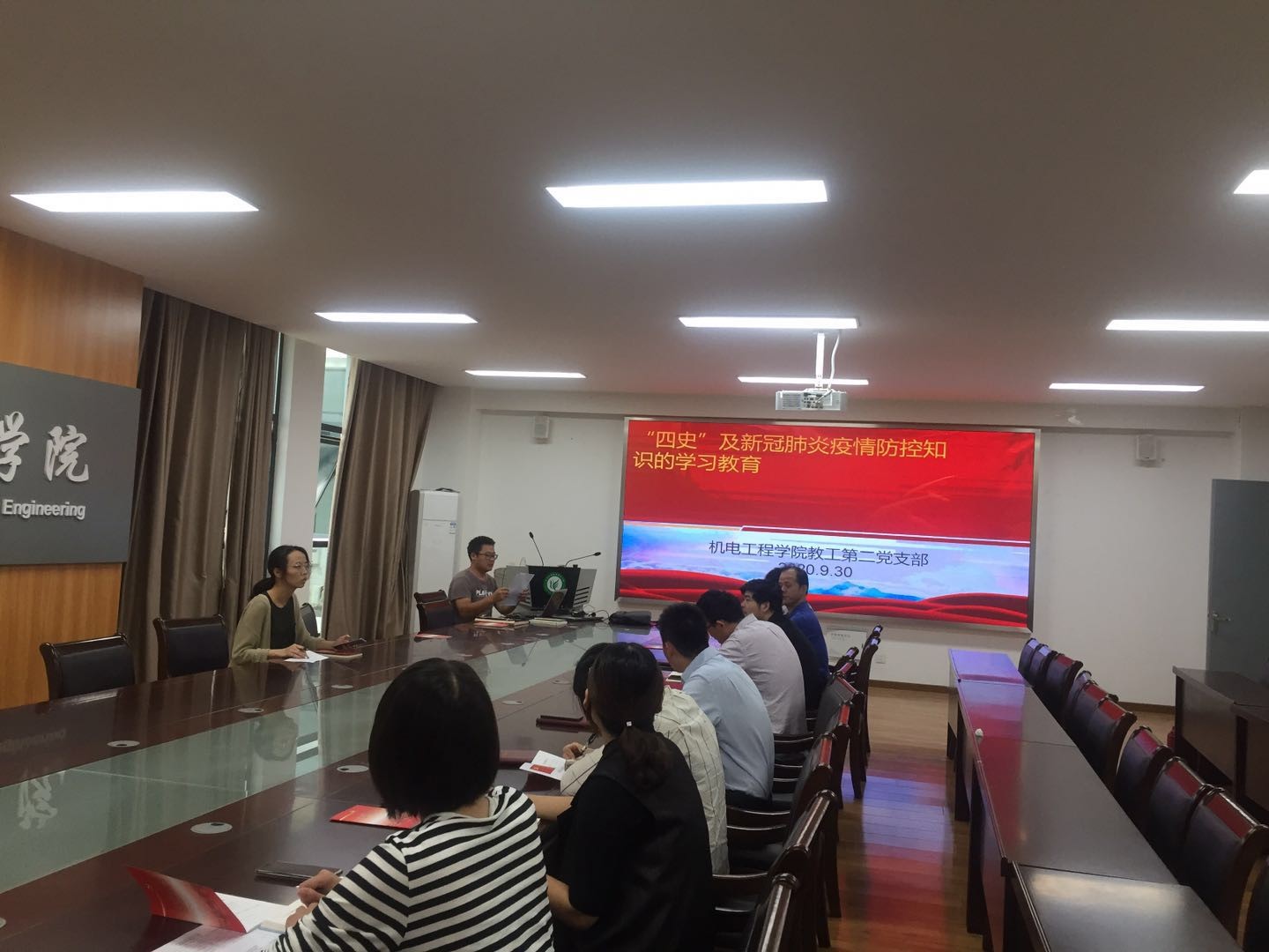为深入学习贯彻落实习近平总书记关于党史、新中国史、改革开放史、社会主义发展史及新冠肺炎疫情防控工作的重要讲话和指示精神,持续深化爱国主义教育,机电工程学院教工第二党支部2020年9月30日下午在学院大会议室开展学习交流活动。
