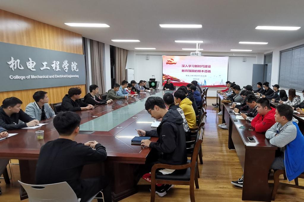 10月16日晚,在机电工程学院学生党支部在工科楼A400会议室举办了“深入学习新时代建设,教育强国的根本遵循”——学习习近平总书记关于教育重要论述讲义活动。20江大转本班学生党员王震、叶鹏担任主讲人,机电工程学院学生党支部主任祁曼主持,全体学生党员、积极分子参加此次学习活动。