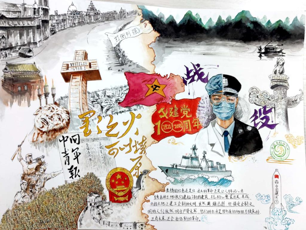 本次大赛主题为“决胜全面小康,献礼建党100周年”。设有软笔、硬笔、绘画、手抄报四大类共134幅作品参加评选。最终茅山校区李天琪等十位同学获得一等奖。