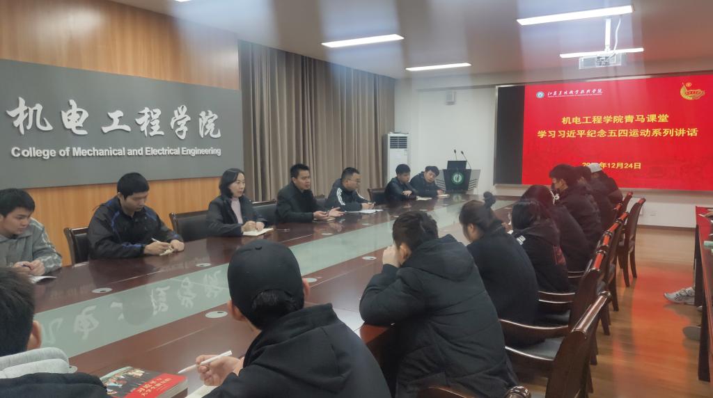 12月24日,机电工程学院组织全院50余名入党积极分子集体学习了“习近平纪念五四运动系列讲话”,并进行了分享交流。学院总支书记熊伟、副书记李杨参加了此次活动。