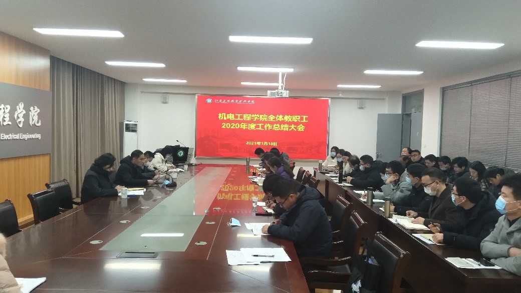2021年1月18日上午,机电工程学院召开全体教职工2020年度工作总结大会,会议由机电工程学院党总支副书记、院长刘永华主持,学院领导班子及全体教职工参加会议。