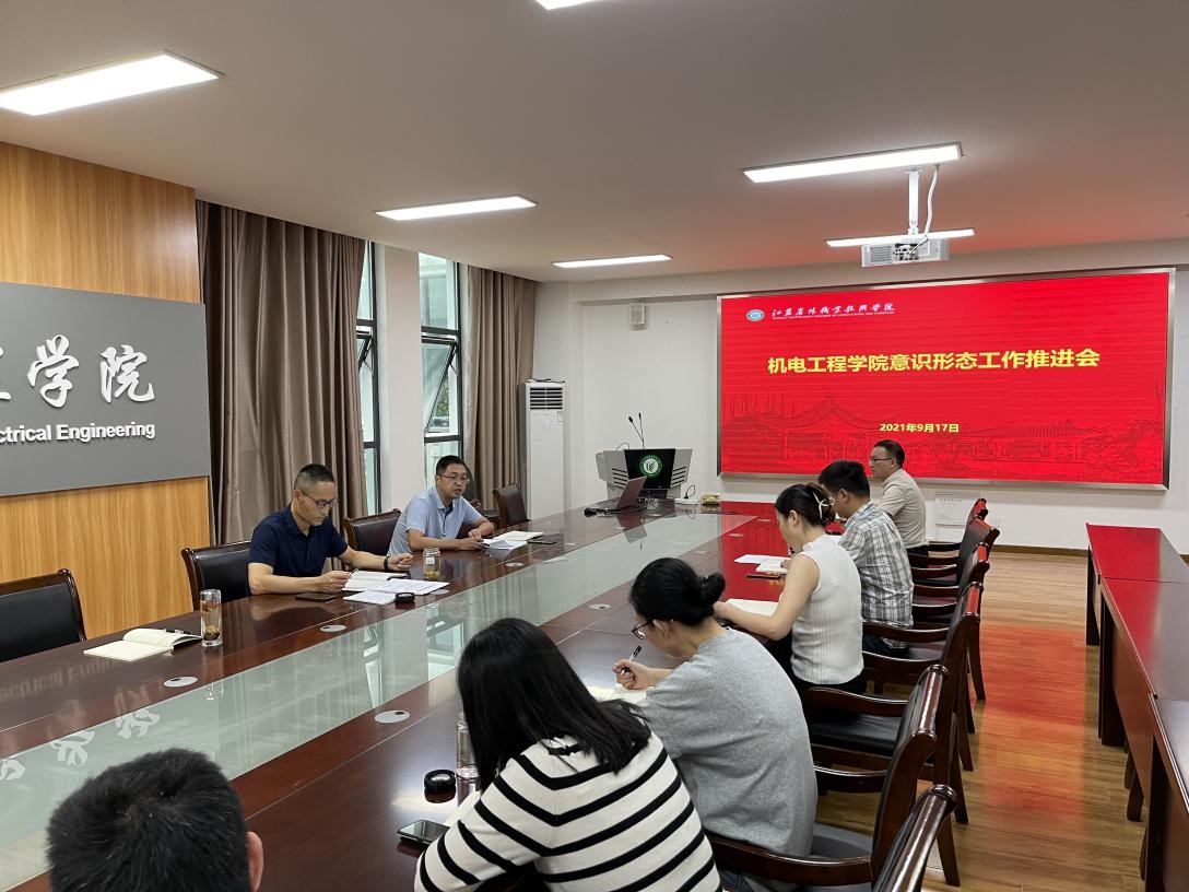 9月17日下午,机电工程学院党总支在机电大会议室召开意识形态工作推进会议,会议由党总支书记张田林同志主持。党总支副书记、院长刘永华同志,党总支副书记钱多同志,党总支委员、副院长高菊玲同志,党总支委员、办公室主任钟兴同志出席会议,各支部书记及委员参加会议。