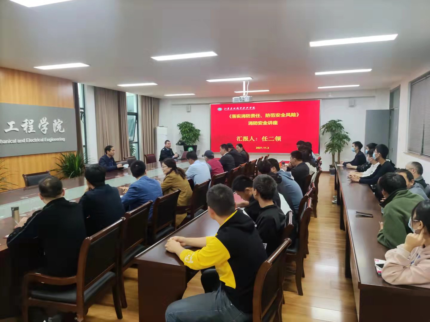 为加强学院消防安全管理,增加安全意识,提升应急疏散、火灾转移物资及自防自救的能力,最大限度保障全体师生的生命安全,11月3日下午,机电工程学院实训中心邀请句容消防宣教中心任二领高级教员,举办了一场《落实消防责任,防范安全风险》的消防安全专题讲座。学院院长刘永华主持培训,学院部分师生参加培训。