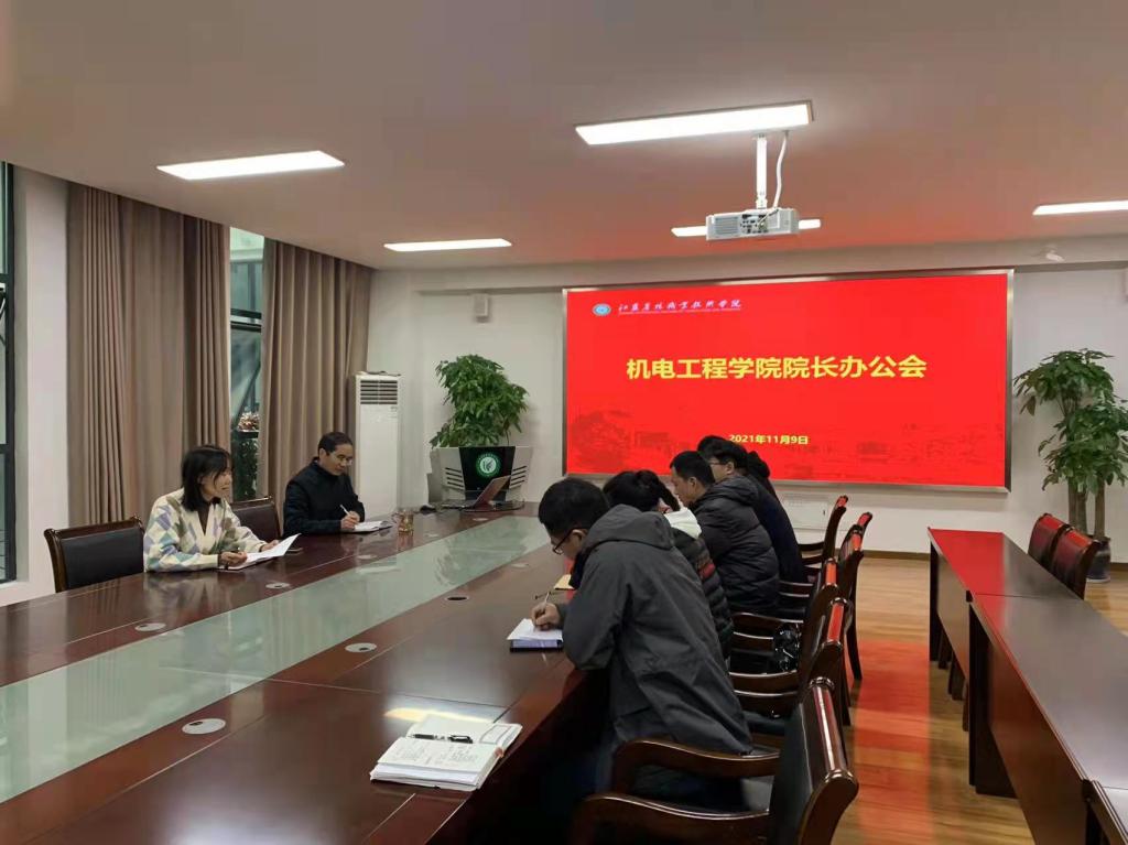 11月9日下午,机电工程学院召开院长工作例会。会上,高菊玲副院长就近期教科研工作做了详细部署,包括安全检查、教学比赛、技能大赛、双高建设、毕业设计等方面;随后,刘永华院长提出工作要求,希望大家提高工作计划执行力,发挥创新精神,多措并举,更加高效的将各项工作落到实处。会议由高菊玲副院长主持,各教研室主任,实训室主任及办公室相关教师参加会议。(撰稿:徐荣丽;审核:高菊玲;上传:胡程磊)