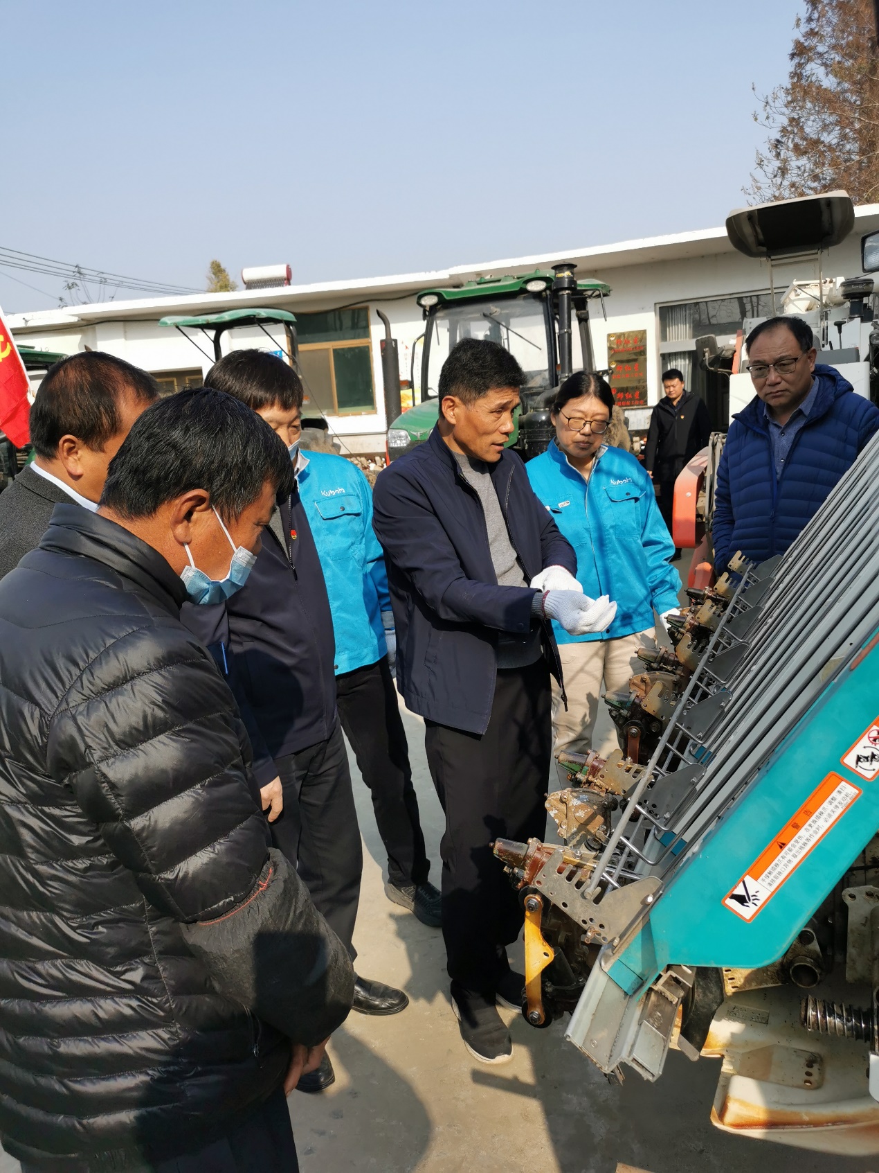 机电工程学院“亚夫科技服务团队”的部分党员教师与“江苏工匠”缪士贵等专业技术人员参与了该项活动,服务团队在高邮市卸甲镇禾丰农机专业合作社开展了农机保养技术培训,并对乘坐式水稻插秧机、全喂入联合收割机、轮式拖拉机等农业装备进行了维护保养技术服务示范。