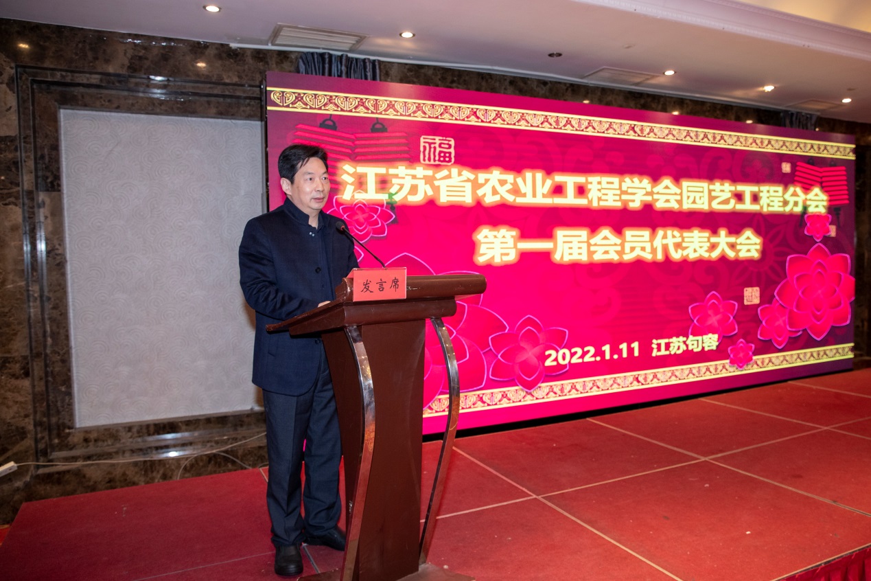 2022年1月11日,由我院承办的江苏省农业工程学会园艺工程分会第一届会员代表大会在句容市隆重召开。来自省内高校、科研院所、优秀企业及推广单位会员代表近50人参加会议。