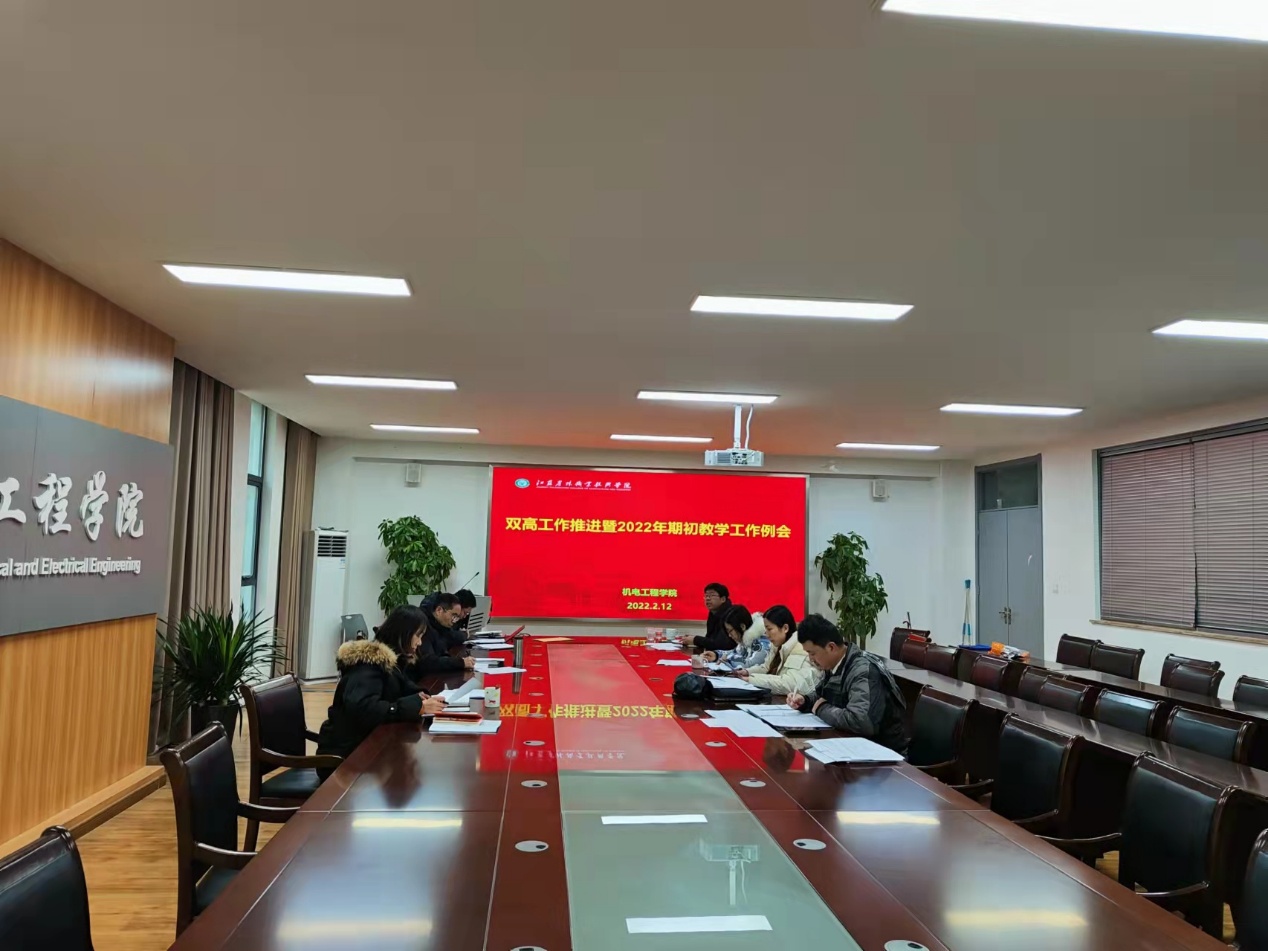 2022年2月12日,机电工程学院召开双高工作推进暨2022年期初教学工作例会。会议由高菊玲副院长主持,刘永华院长出席会议,各室(中心)主任参加了会议。 会上,高院长首先对2-3月份的教学工作做了安排部署,其次,对学院承担的双高工作任务分条目作了详细解读,要求大家按照已完成任务和未完成任务分类汇总,做好进度安排。随后,农机教研室赵梦龙主任对省高水平专业建设情况作了汇报,对未完成的工作及存在的困难作了说明。其他室主任也对双高建设下一步的工作推进和今年的工作重点作了表态发言。 会议最后,刘永华院长再次强调了双高建设的重大意义,要求大家各司其职,通力合作,努力突破薄弱环节,圆满完成双高任务,助力学校发展!