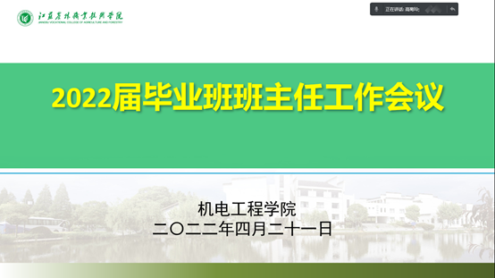 2022年4月21日,机电工程学院召开2022届毕业班班主任工作线上会议,会议由张田林书记主持,学院班子成员、内设机构负责人和毕业班全体班主任参加了会议。