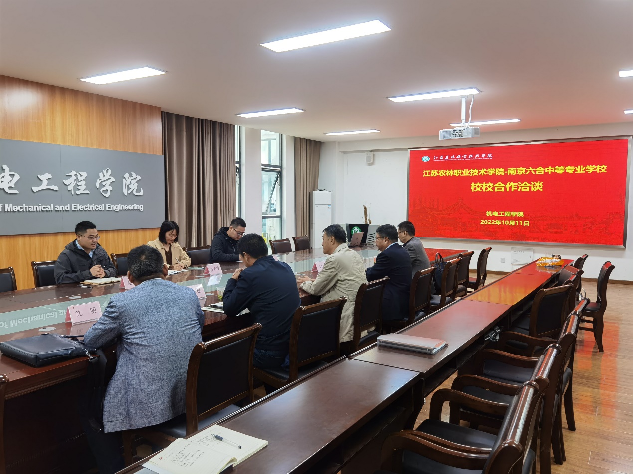 2022年10月11日,南京六合中等专业学校王镇刚书记一行来我院洽谈校际合作培养农机维修技能人才相关事宜。机电工程学院副院长高菊玲、智能农机教研室主任赵梦龙出席本次洽谈会。会上,双方就农机维修技能人才培养进行了深入交流。