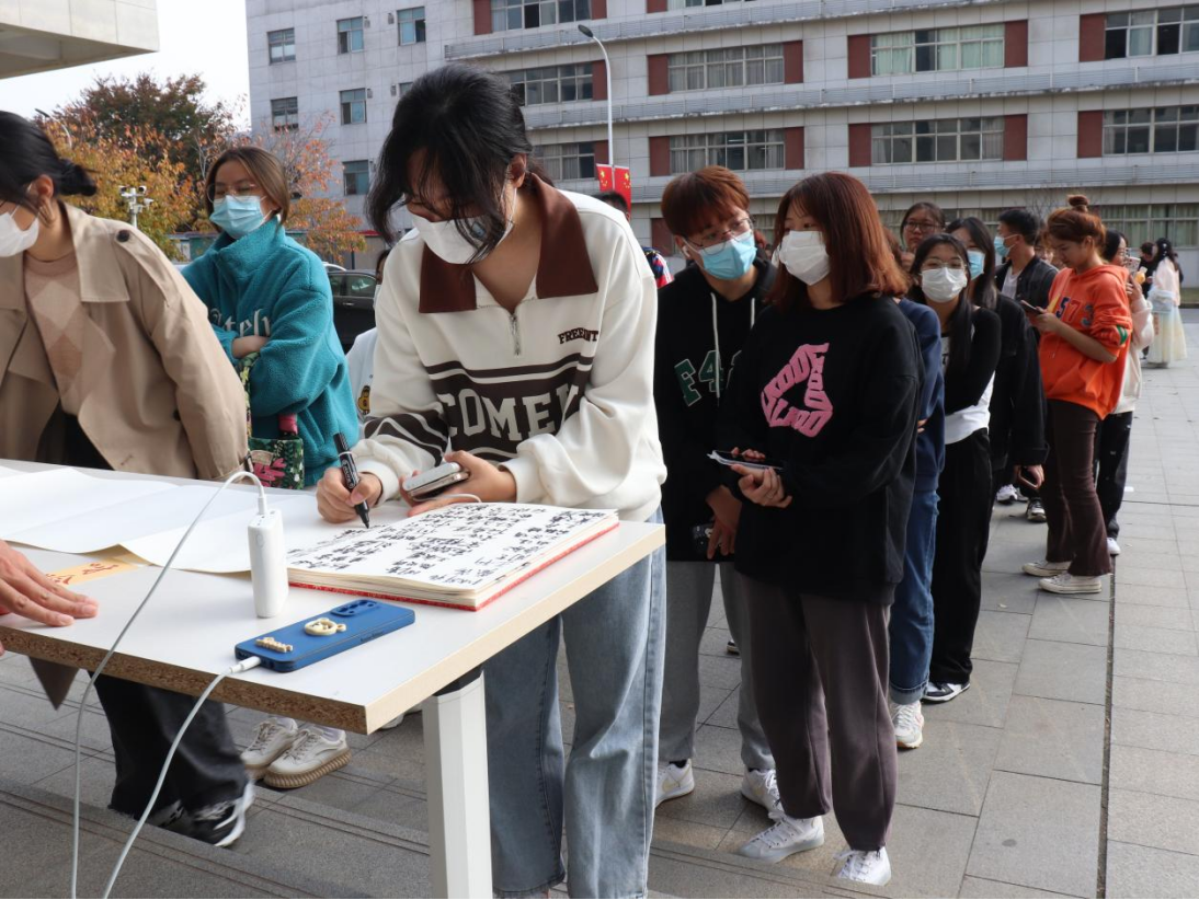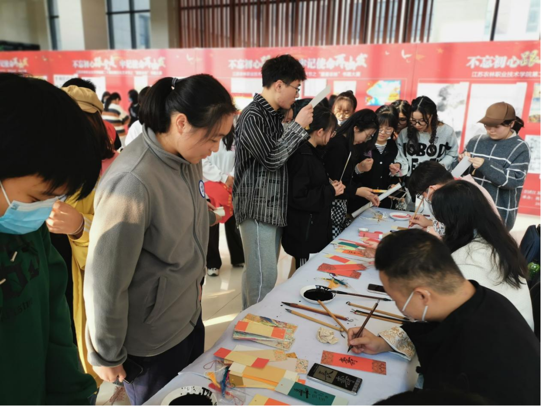 本次活动全院师生共创作了300幅立意深刻、饱含深情的作品,作品主题分别为“学习党的二十大精神”“抗击疫情”“学生资助”“青春向党”等,生动展现了农林青年和当代大学生的精神面貌,作品充满艺术性和思想性,抒发了当代大学生牢记初心跟党走的使命感与责任感。活动现场共设置优秀作品展出区、抽奖区、奖品创作区、书画体验区,不少同学亲身体验软笔书法,并收获现场写就的书法作品作为礼品,活动现场反响热烈。