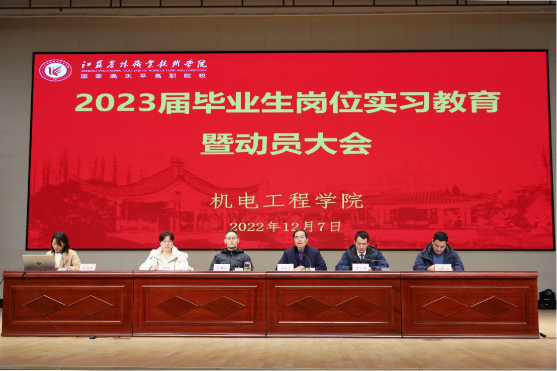为贯彻落实好教育部《职业学校学生实习管理规定》、省教育厅《江苏省职业学校学生实习管理实施细则》,切实做好我院2023届学生岗位实习工作,强化实习管理,明确实习内容,确保实习质量,12月7日下午,机电工程学院在大学生艺术活动中心召开2023届毕业生岗位实习教育暨动员大会。机电工程学院党总支书记张田林、院长刘永华、副院长高菊玲、各教研室主任、毕业班辅导员、实习指导教师及全体2023届毕业生参加了会议,会议由副院长高菊玲主持。
