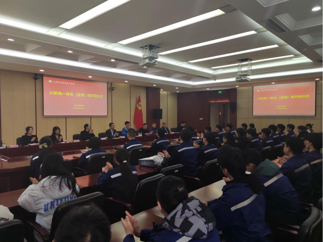 2月22日上午,机电工程学院2022级金纬班开班仪式在综合楼九楼会议室隆重举行。金纬机械有限公司董事长何海潮、学院副院长毕德全、金纬班相关专业教师及21级、22级学生参加了活动。开班仪式由机电工程学院党总支书记张田林主持。