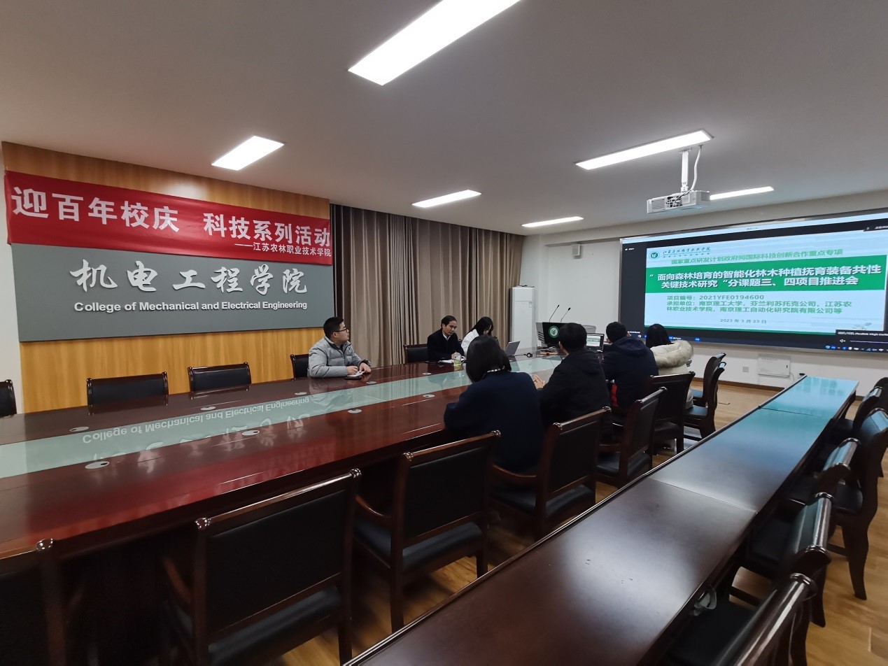 会上,机电工程学院刘永华院长汇报了我院承担的“面向森林培育的智能化林木种植抚育装备共性关键技术研究”分课题进展情况,南京理工大学彭富明教授对目前项目相关工作进行了总结,芬兰利苏托克公司黄文丁教授介绍了芬兰方工作进度。与会人员就任务的具体细节进行了深入讨论,现场修改了任务方案,为下一阶段工作做准备。