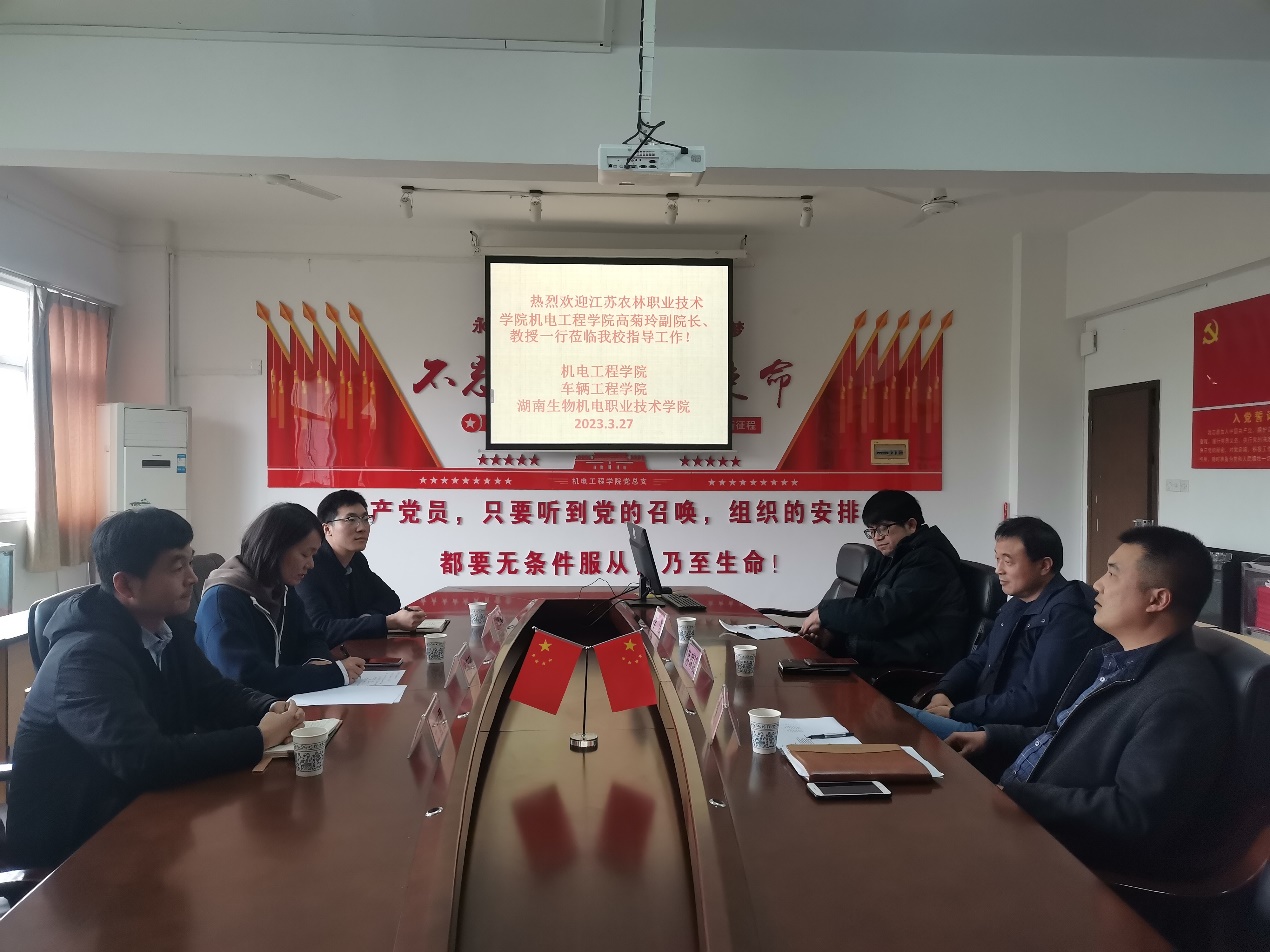 3月27-28日,机电工程学院副院长高菊玲带队赴湖南开展产教融合专题调研。调研组先后赴湖南机电职业技术学院、湖南生物机电职业技术学院开展学习和交流,并参观了2所学校的实验实训室,就校企合作、产业学院建设运行、社会化服务等方面开展了深入交流。