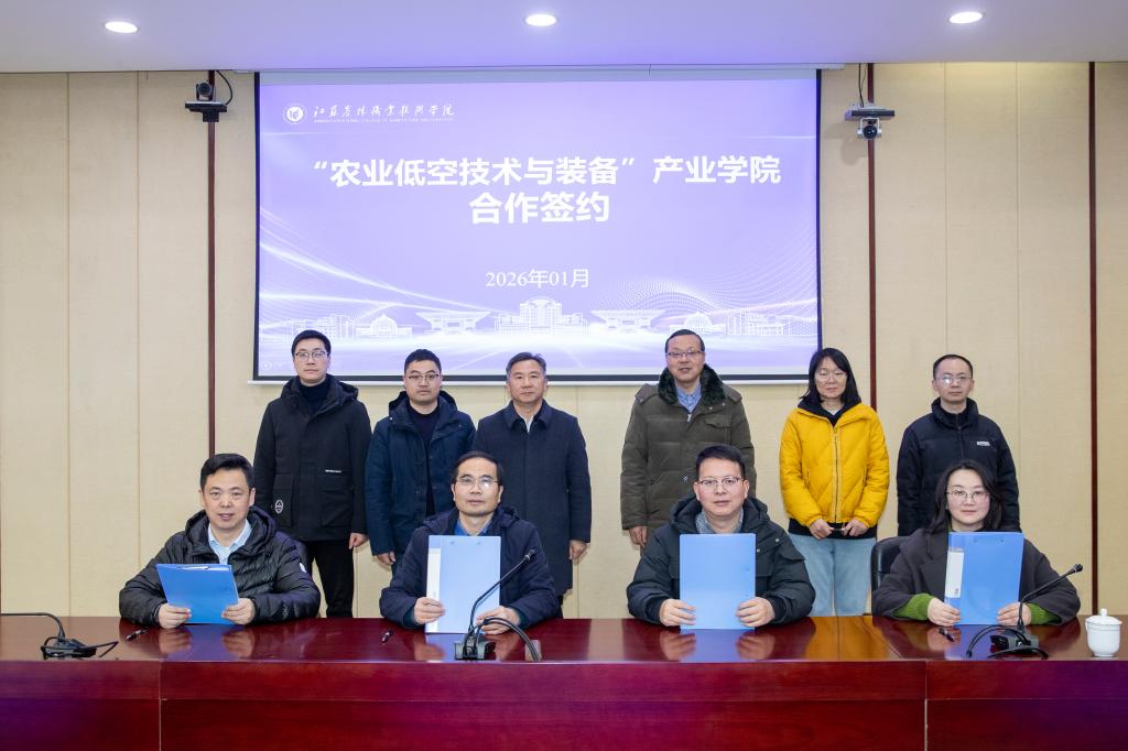 1月12日上午,“农业低空技术与装备”产业学院合作签约仪式在综合楼九楼会议室举行,产业学院由苏州极目机器人科技有限公司、拓攻(南京)机器人有限公司、南京维能信息技术有限公司和江苏农林职业技术学院四方共建。学院党委副书记、院长潘永圣,苏州极目机器人科技有限公司研发部技术总监周风景,拓攻(南京)机器人有限公司自动驾驶技术研究院院长徐进,南京维能信息技术有限公司总经理朱红飞,科技开发处和机电工程学院党政负责人、相关师生参加签约仪式。