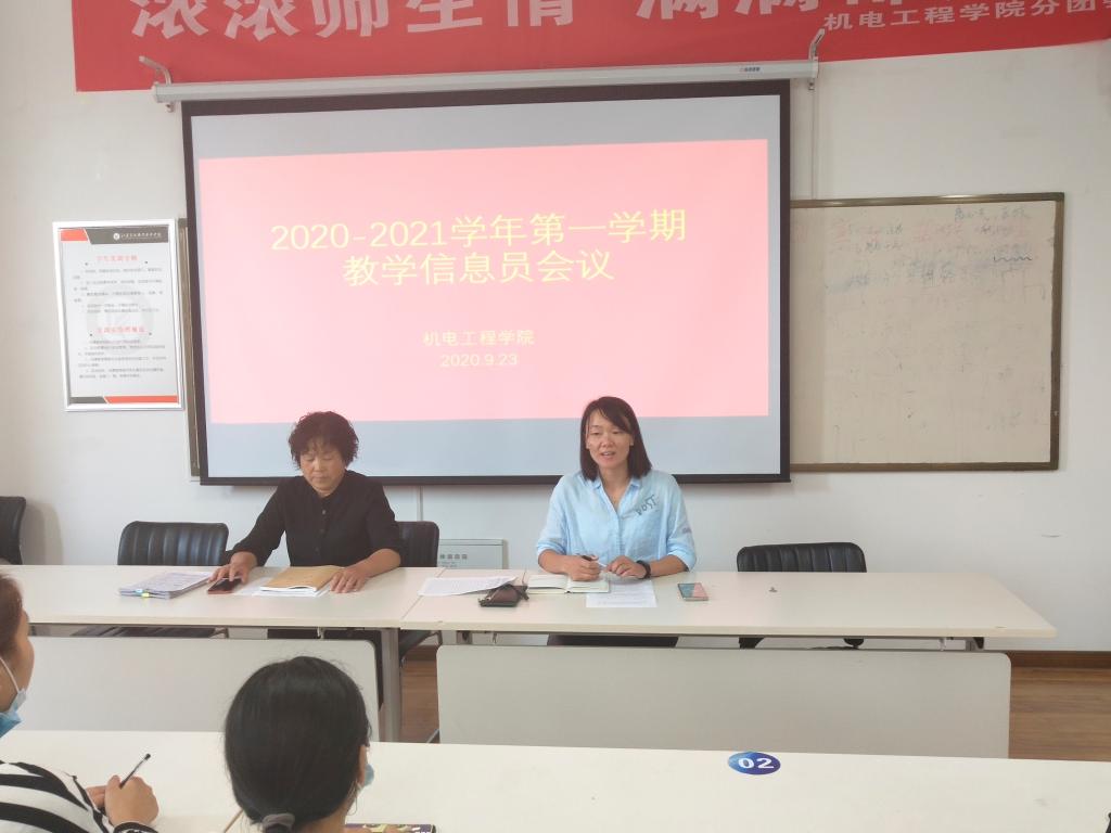 9月23日下午,机电工程学院在工科楼A414召开2020-2021学年第一学期教学信息员会议,学院高菊玲副院长对信息员工作提出了几点要求,为本学期信息员工作明确了方向。督导曹恩美老师对本学期信息员工作进行了具体要求和安排,同时也对信息员在工作中遇到的难点、疑点进行了详细解答。