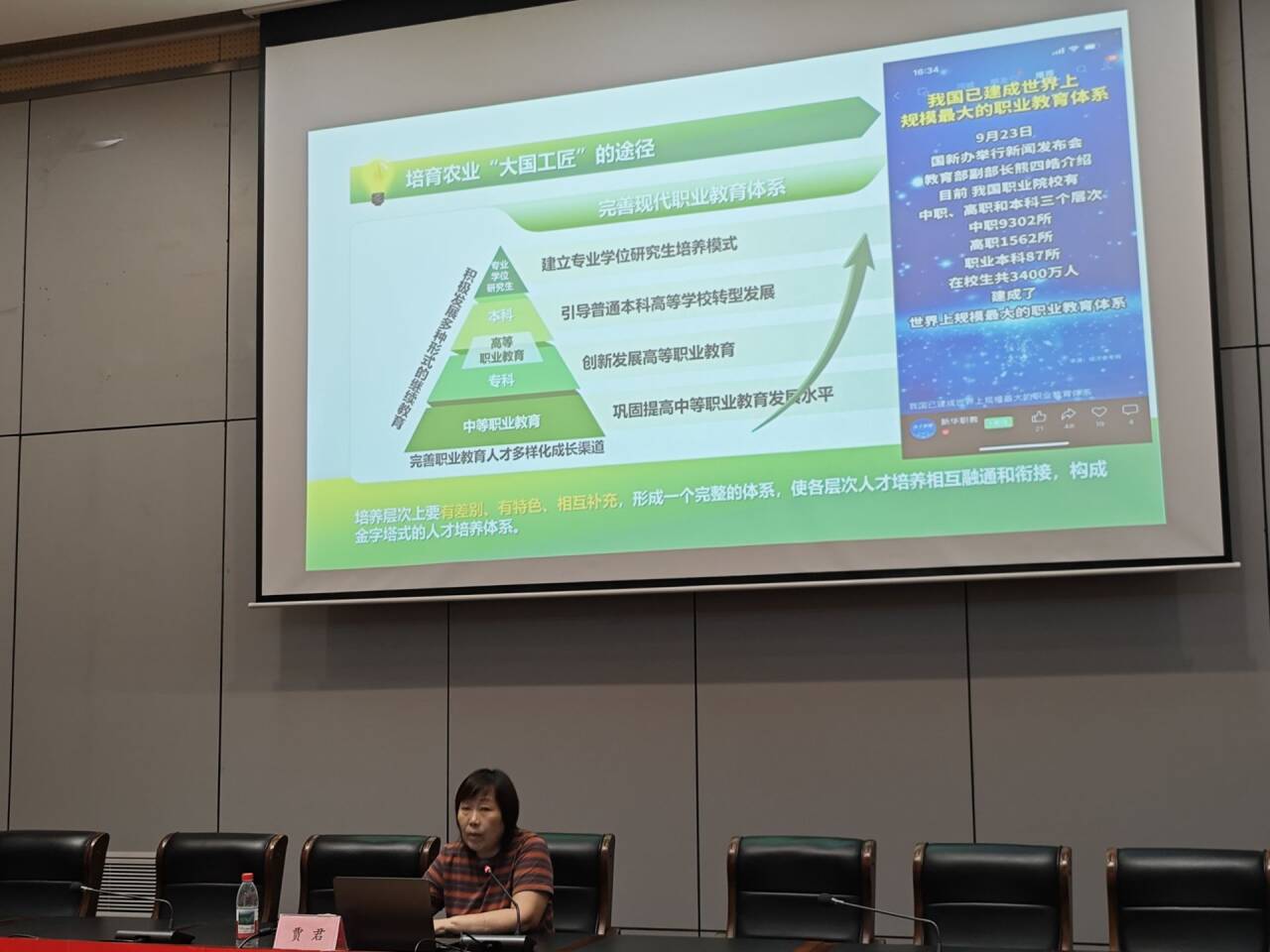 讲座中,贾君教授围绕“培育大国工匠”核心主题展开讲解。她结合现代农业产业发展趋势,指出在农业现代化进程中,技术创新与技能人才是关键支撑,而“工匠精神”正是技能人才成长的核心内核。