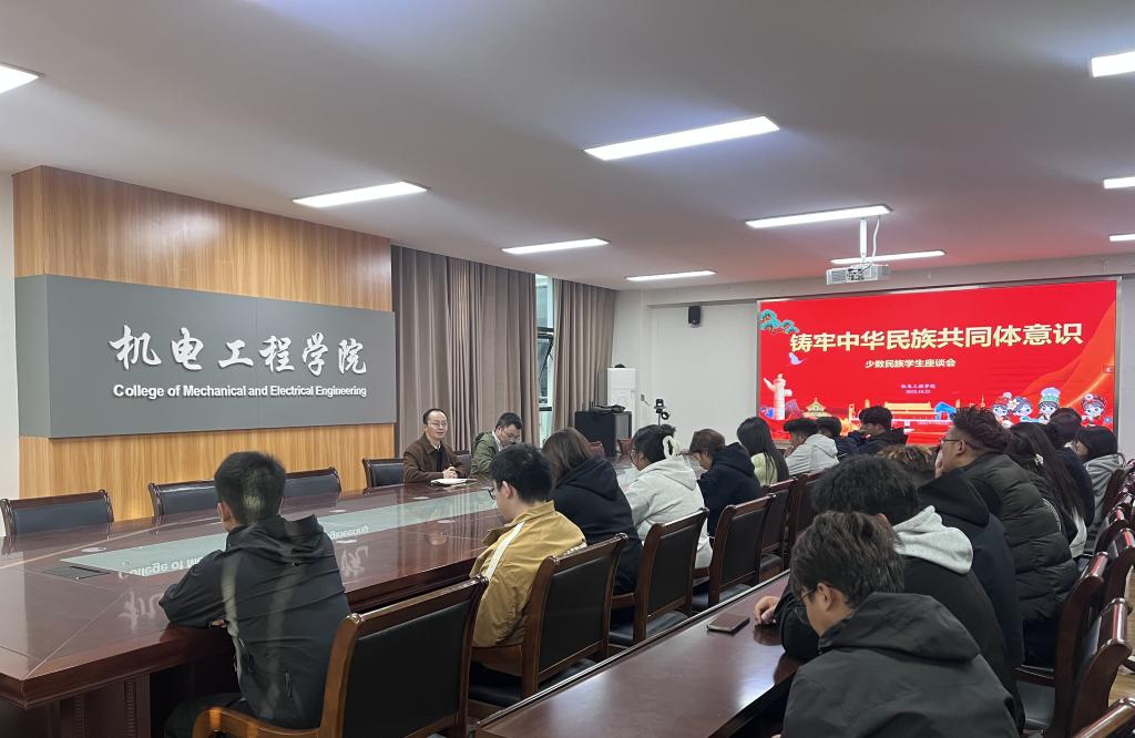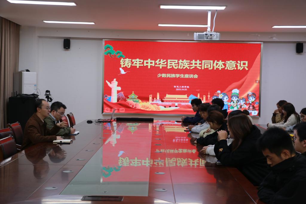 10月22日下午,机电工程学院在工科楼A400大会议室召开“铸牢中华民族共同体意识”全体少数民族学生座谈会。学院党总支副书记万里、全体少数民族学生、师生代表共同参会。