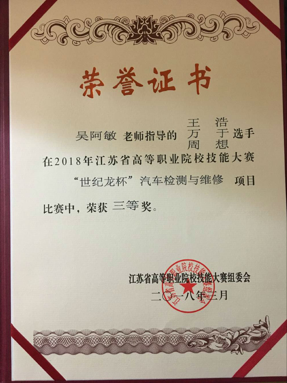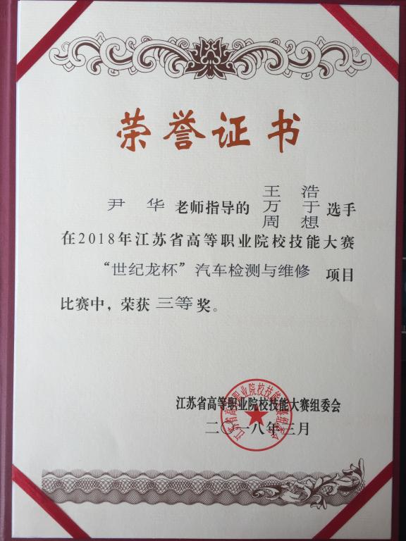 我校机电工程学院尹华、吴阿敏两位老师指导的汽车检测与维修技术专业学生王浩、万于、周想三名选手通过激励的竞赛,最终在三十二支参赛队伍中脱颖而出,荣获三等奖,开创了我校在汽车检测与维修赛项中获奖的先河,充分展现了我校学子勇于拼搏、精益求精的精神。