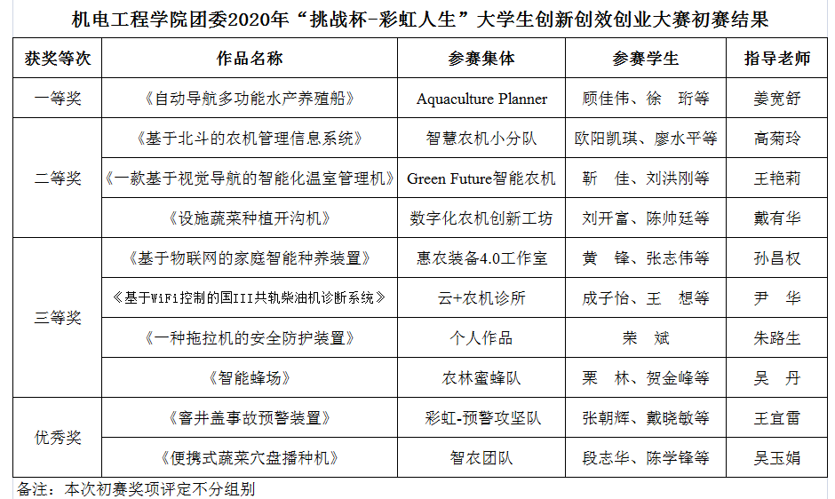 虽然本次比赛受到疫情影响,但是自3月初下发初赛通知以来,机电工程学院师生积极行动,通过观摩备赛直播、教研室集中打磨、线上指导交流和校内外专家评审,共有十件兼具实用与创新性的作品在比赛中脱颖而出,参赛项目涵盖工业设计、科技发明和生产工艺革新与工作流程优化。其中顾佳伟、徐珩等同学设计开发、姜宽舒老师指导的作品《自动导航多功能水产养殖船》获得一等奖。