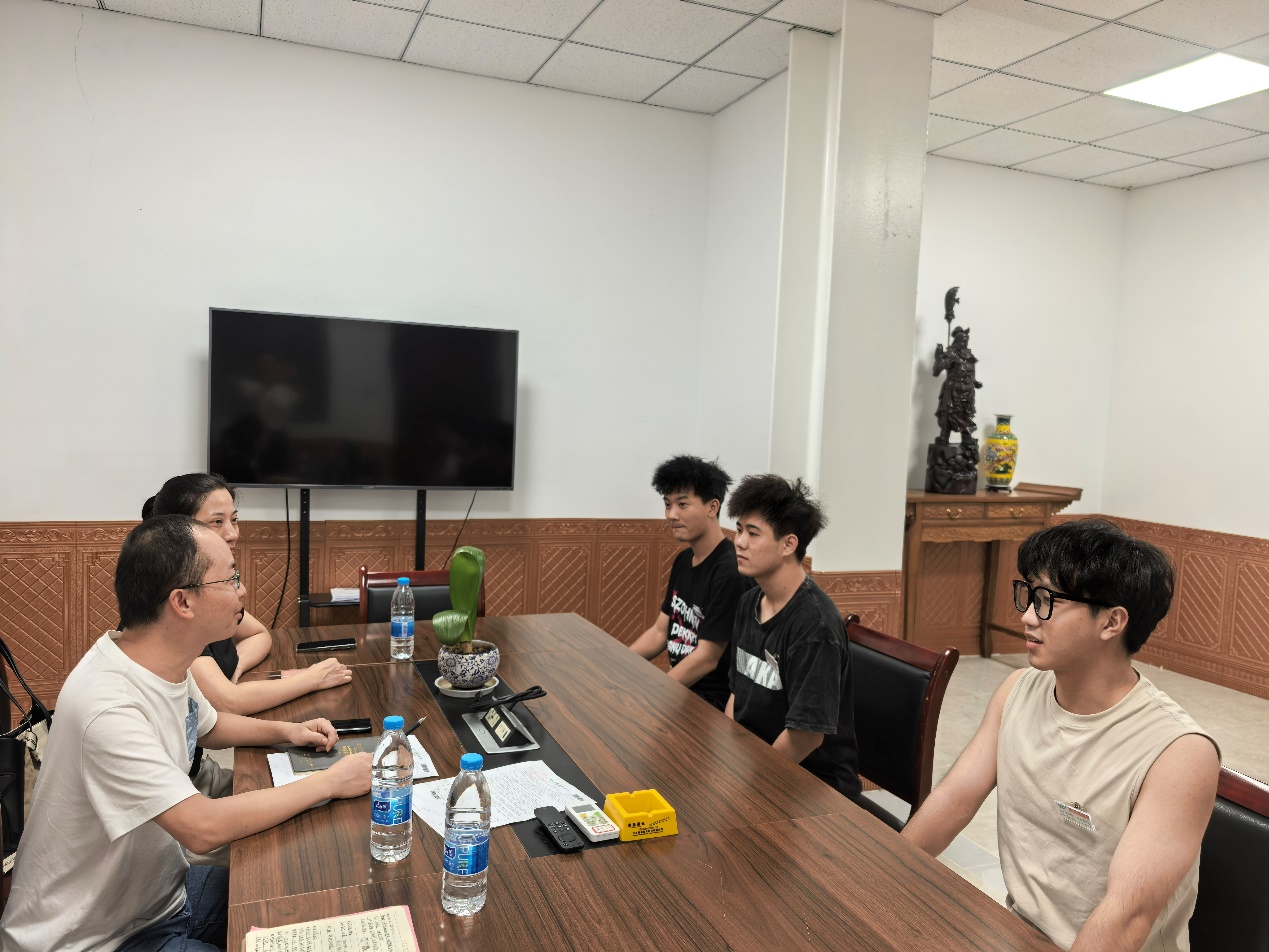 签约仪式结束后,机电工程学院学工办万里老师利用企业现场的实践场景,为即将开启职业生涯的4 名学子及参与面试的学生开展了 “最后一堂思政课”。他结合制造业生产操作的特殊性与职场发展规律,向学生们着重强调:“进入职场后,首要牢记安全第一,严格遵守企业的安全生产规范与操作规程;工作中要做到严格执行任务部署,不打折扣落实岗位职责;同时保持勤奋好学的态度,主动向企业前辈请教实践经验,在技术钻研上追求精益求精,尽快实现从‘学生’到‘职业人’的角色转变。”他还温情叮嘱道:“无论未来职业发展如何,母校永远是大家最坚强的依靠。如果在工作中遇到困难,随时可以联系班主任或学院学工办,机电工程学院会第一时间为大家提供就业指导、资源对接等帮助,全力支持每一位学子在职业道路上走得更稳、更远。”简短而真挚的话语,让在场学生深受感动,也为此次访企拓岗之行增添了浓厚的人文关怀色彩。