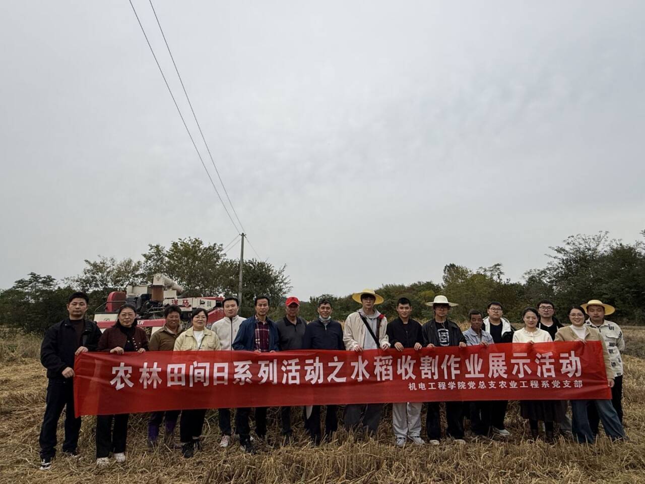 10月29日,农业工程系党支部赴句容市郭庄镇汤庄村开展“农林田间日”系列活动——水稻收割作业现场展示。支部全体党员积极参与,以实践行动践行党员的先锋模范作用。